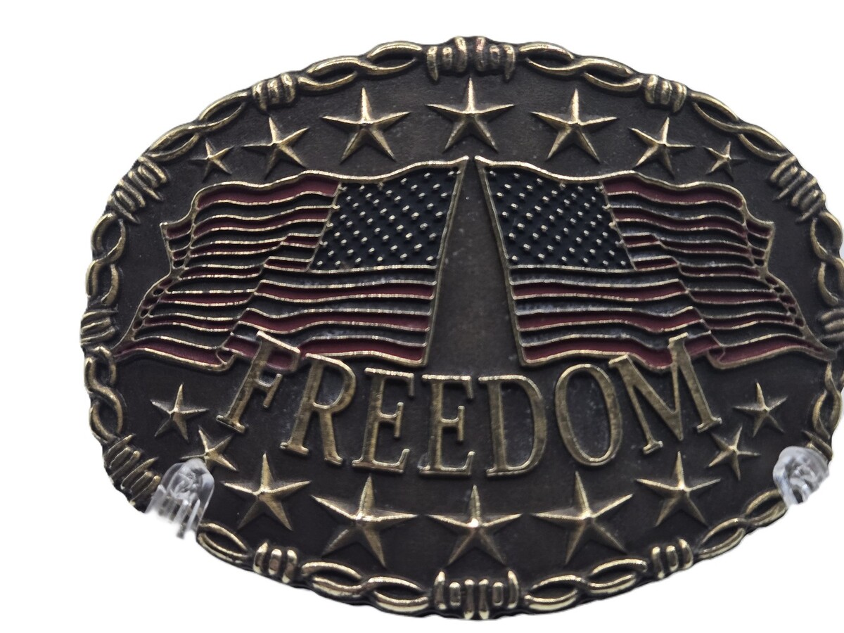 ? The American Freedom Flag Stars Brass Metal Belt Buckle is a vintage accessory that embodies the theme of freedom.