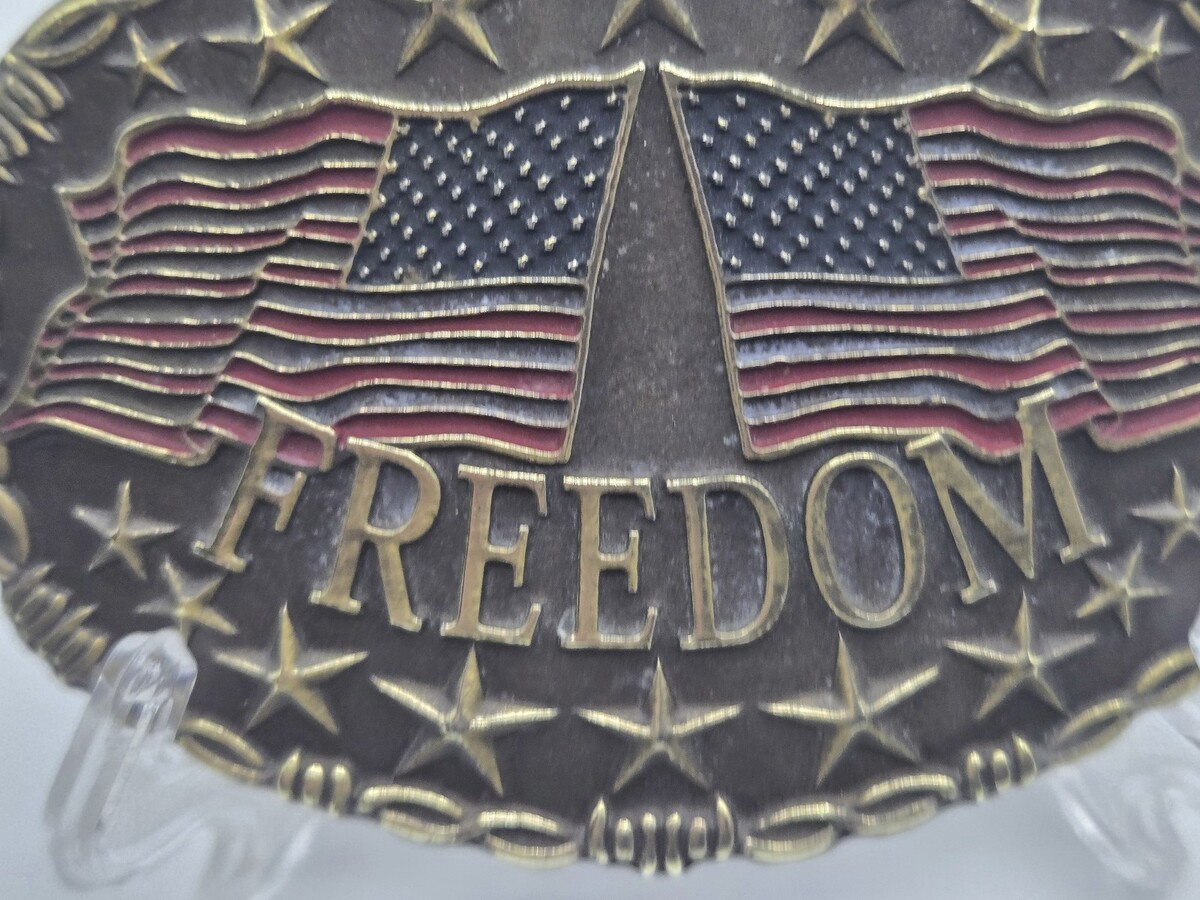 American Freedom Flag Stars Brass Metal Belt Buckle 4" X 3"