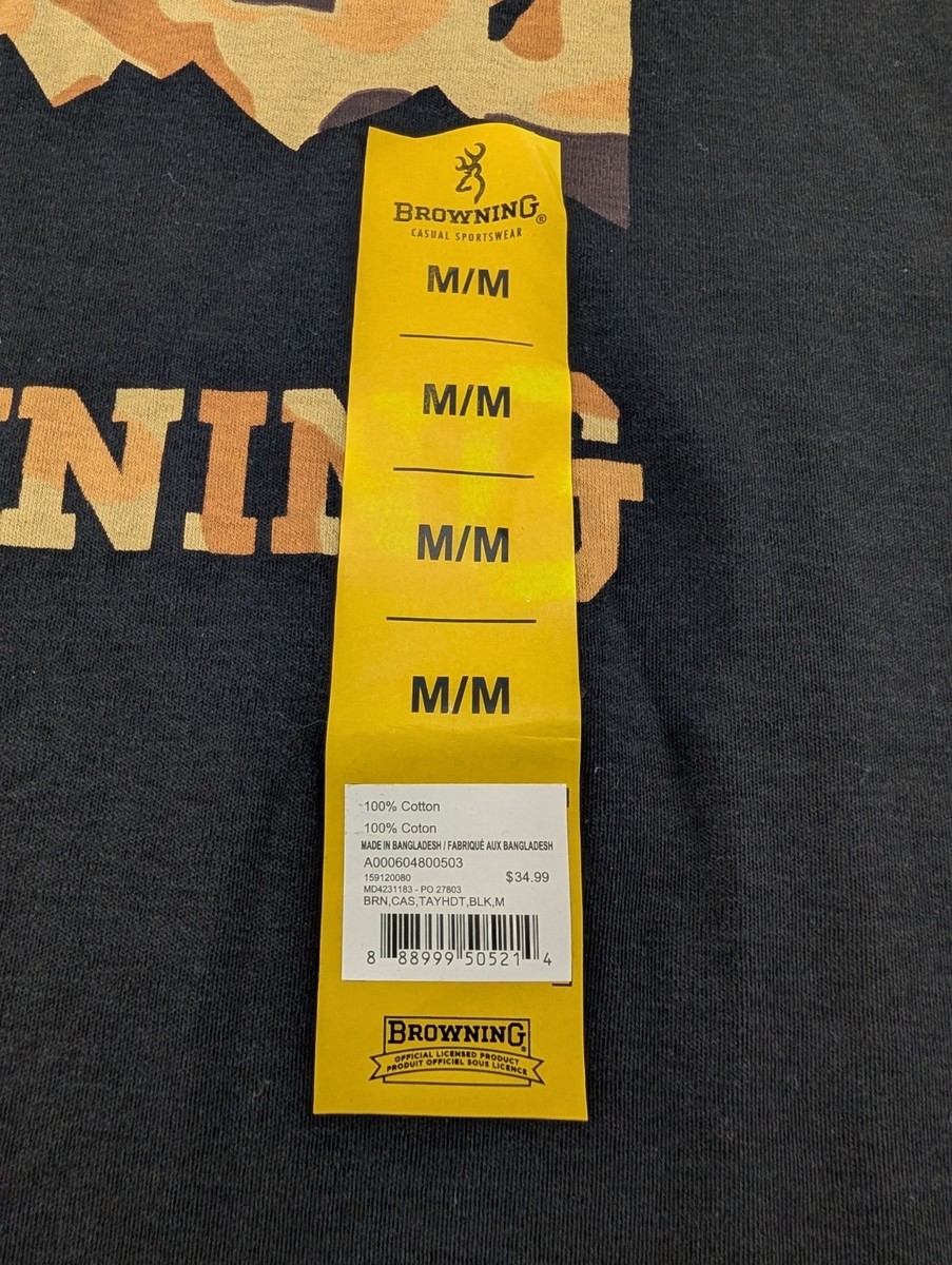 Browning Light Weight Hoodie Medium Black Cotton Camo Graphic New