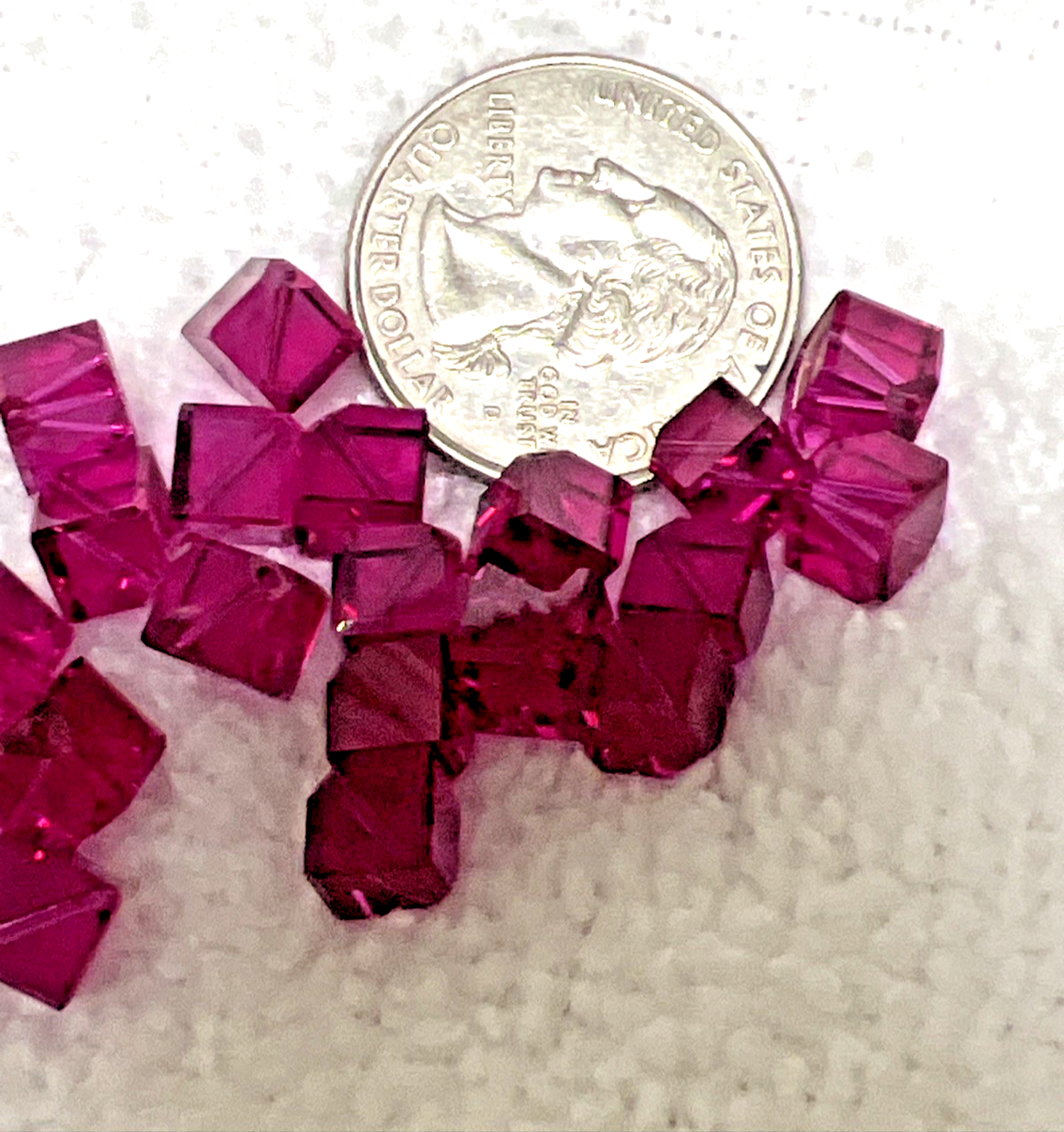 20 VNTG Swarovski Square Pillow Cut Crystal Beads 1/4? Never Used Fuchsia Diagonal Drill The color is better in person.... Never used