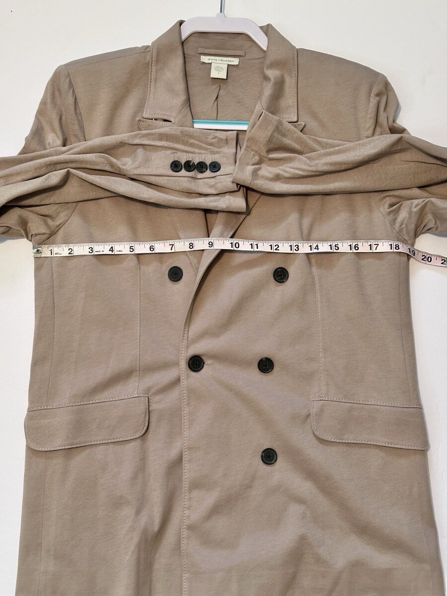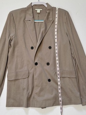 White + Warren Cotton Blazer Jacket Tan Womens Large Double Breasted Buttons