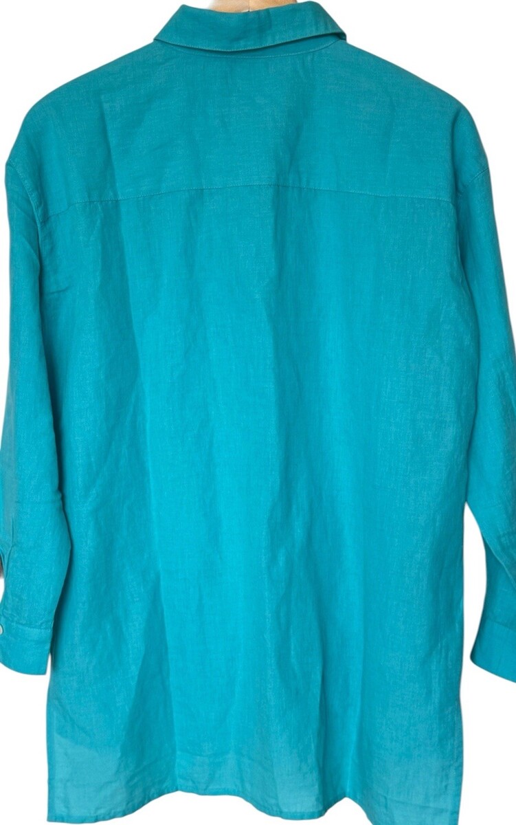Calypso St. Barth Oversized Button Up Shirt Womens XS Aqua Linen Blend Top New
