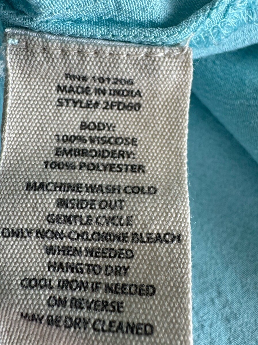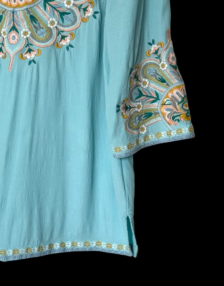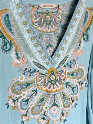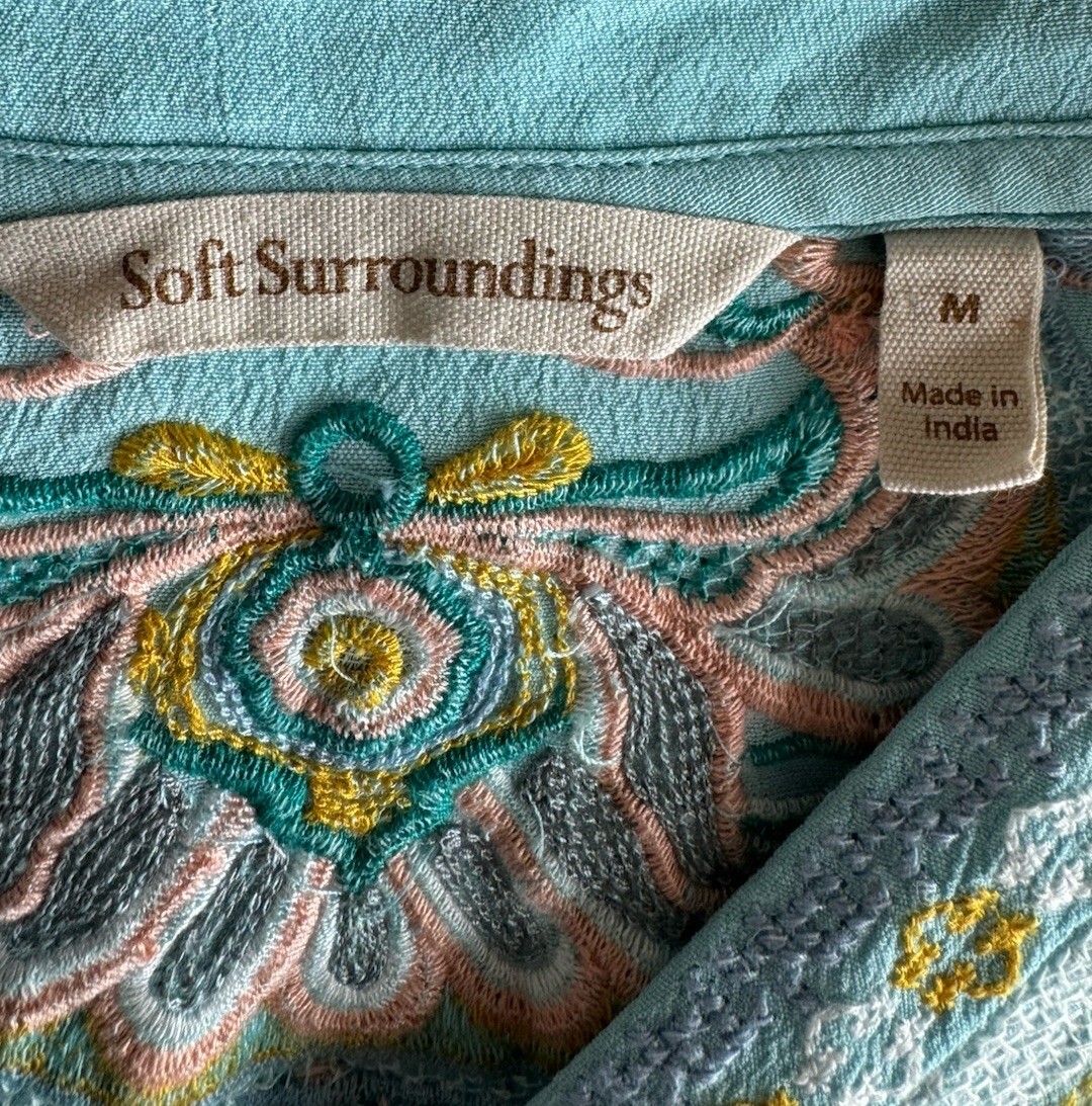 Soft Surroundings Blue River Island Top Size Medium Tunic Embroidered Aquamarine