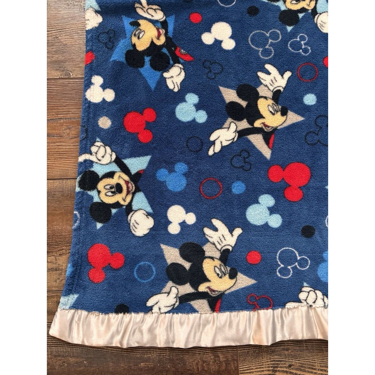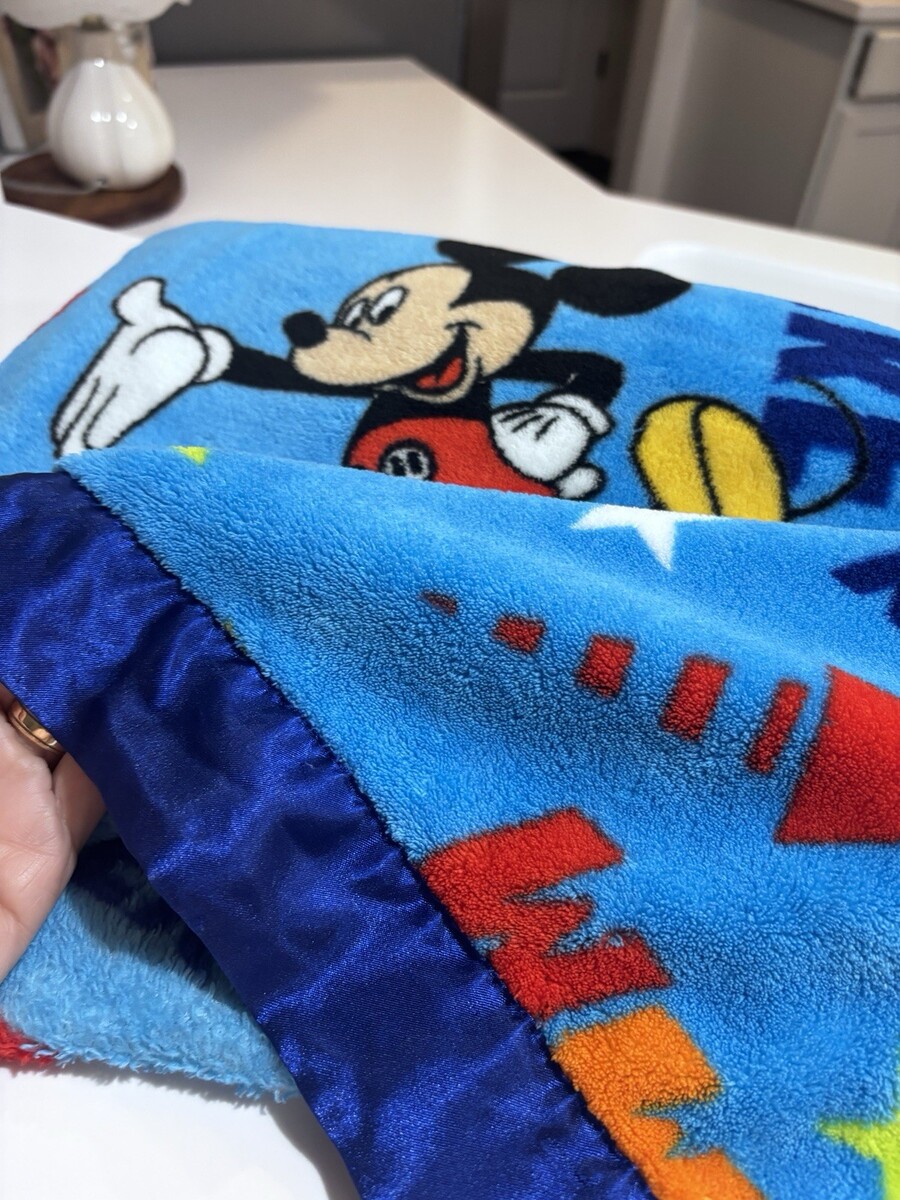 Disney Mickey Mouse Stars Arrows Toddler Blue Satin Trim Blanket 40"x50" Blue