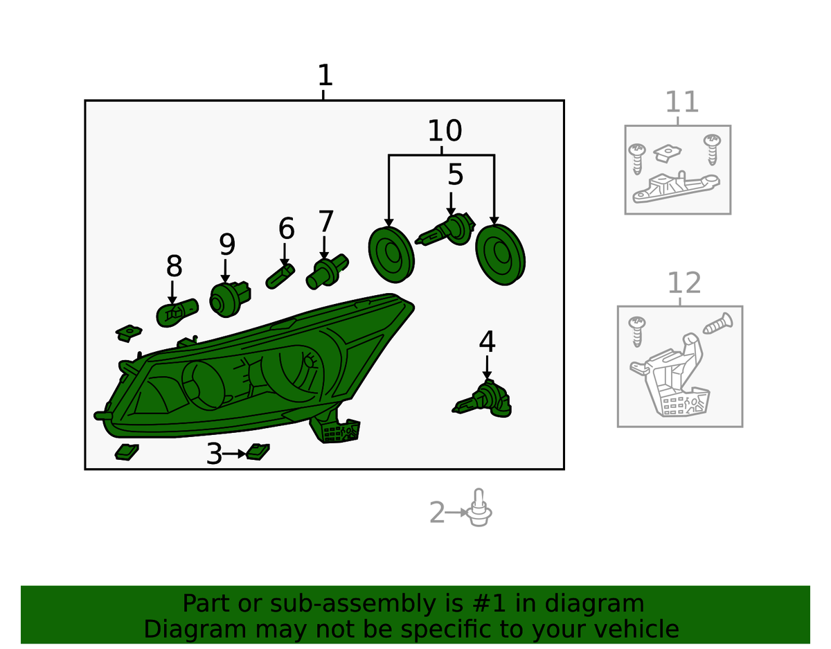 *2008-2012 NEW GENUINE OEM HONDA ACCORD PASSENGER SIDE HEADLIGHT. PART NUMBER 33100-TA0-A01*