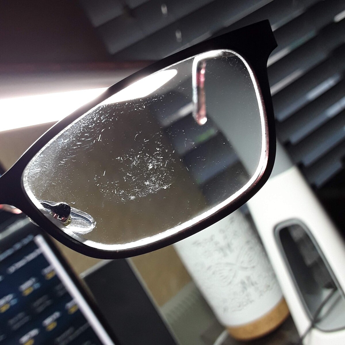 A cluster of hairline scratches is visible under direct light, but not very noticeable when wearing.