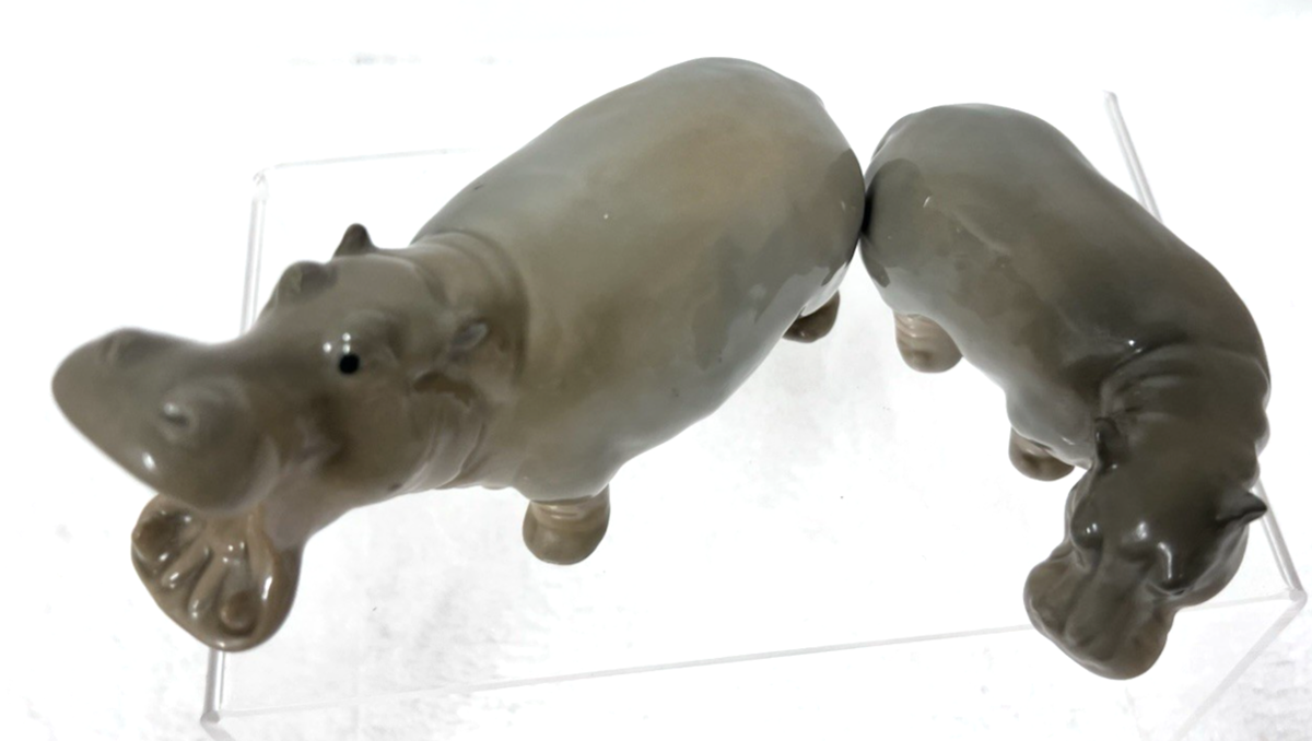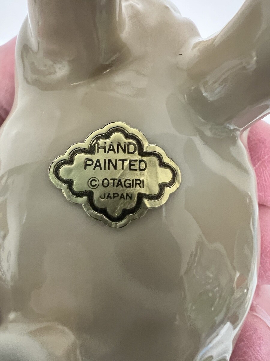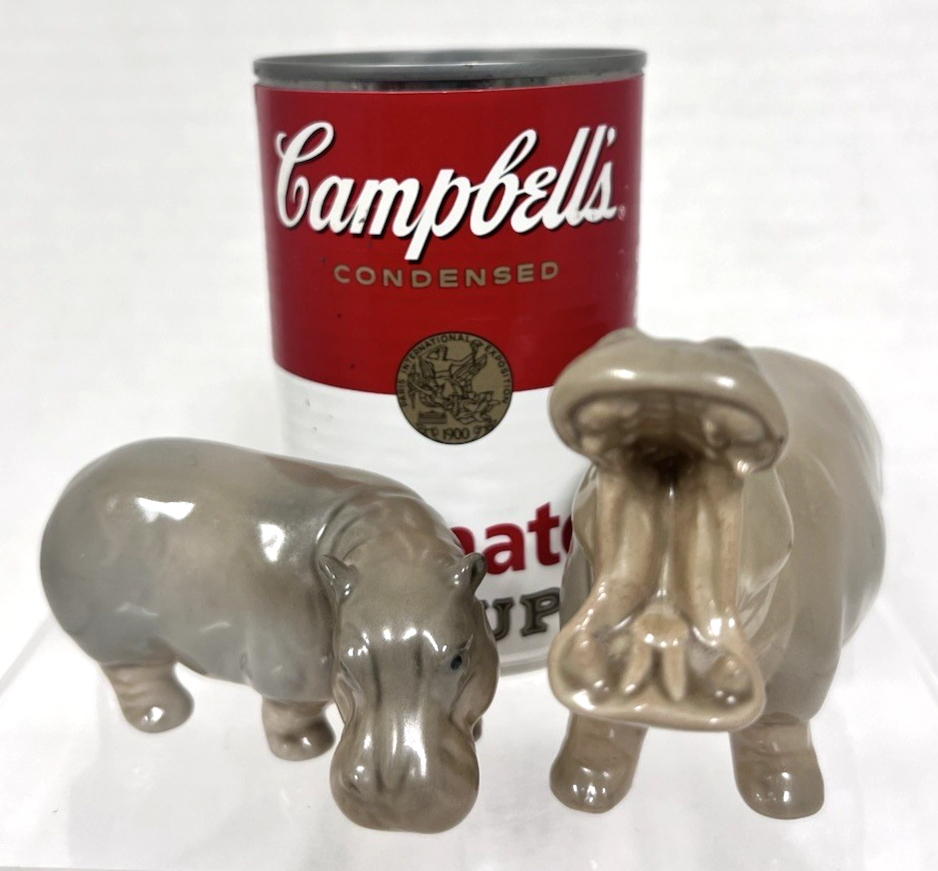2 Vintage Gray Ceramic Otagiri Hippos Hippopotamus Figurines Original Sticker. Great condition pair of hippopotami figurines gray grey brown glaze, large hippo measures approx. 4 1/2" long and 3 1/8" tallest point Japan Otagiri original sticker no damage great condition; small hippo measures approx. 3 3/8" long and 1 3/4" tall original sticker no damage. See pictures.