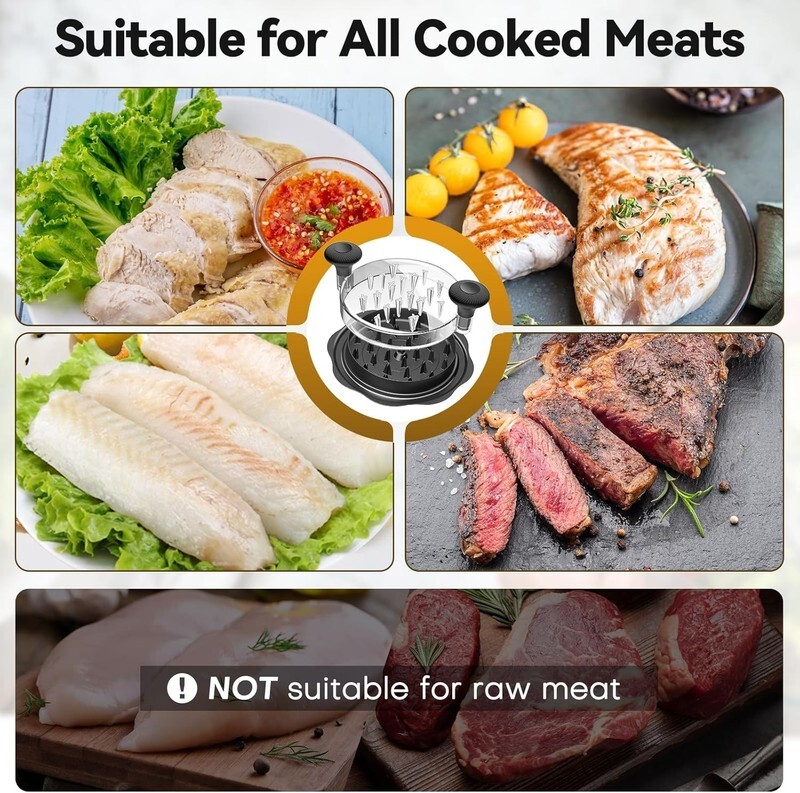 ?Efficient Shredding?The cross-teeth design of the top lid and bottom ensure full contact between meat pieces and fork teeth, achieving faster and more efficient shredding results.?