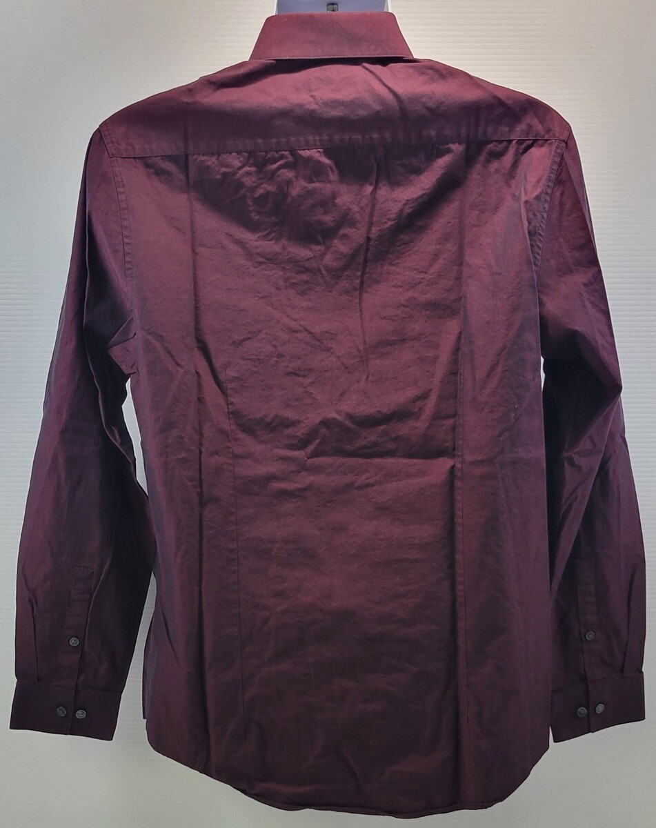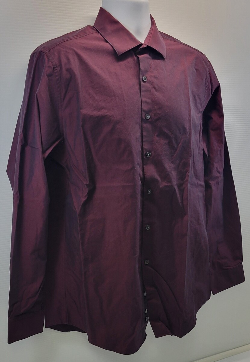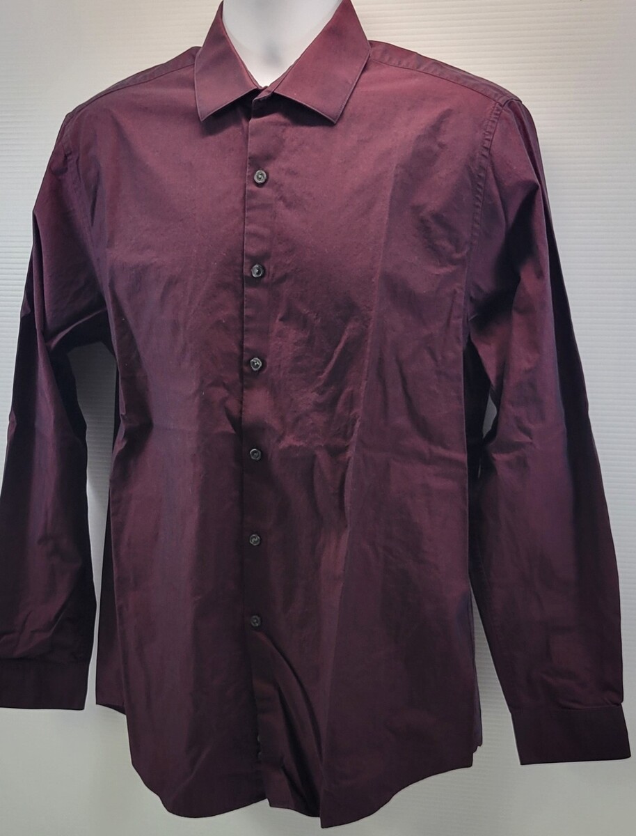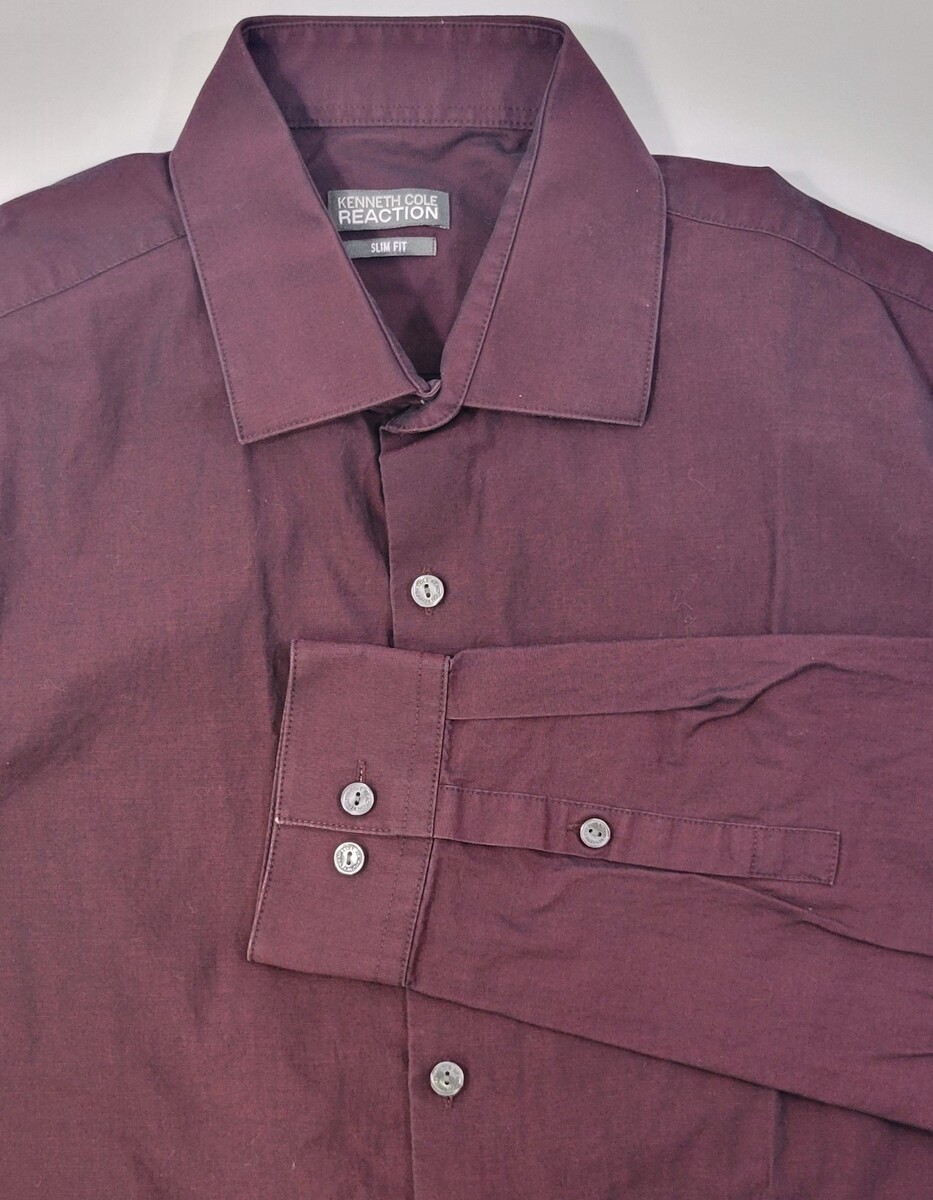 H) Kenneth Cole Reaction Slim Fit Men Button Dress Shirt Burgundy 16 34/35