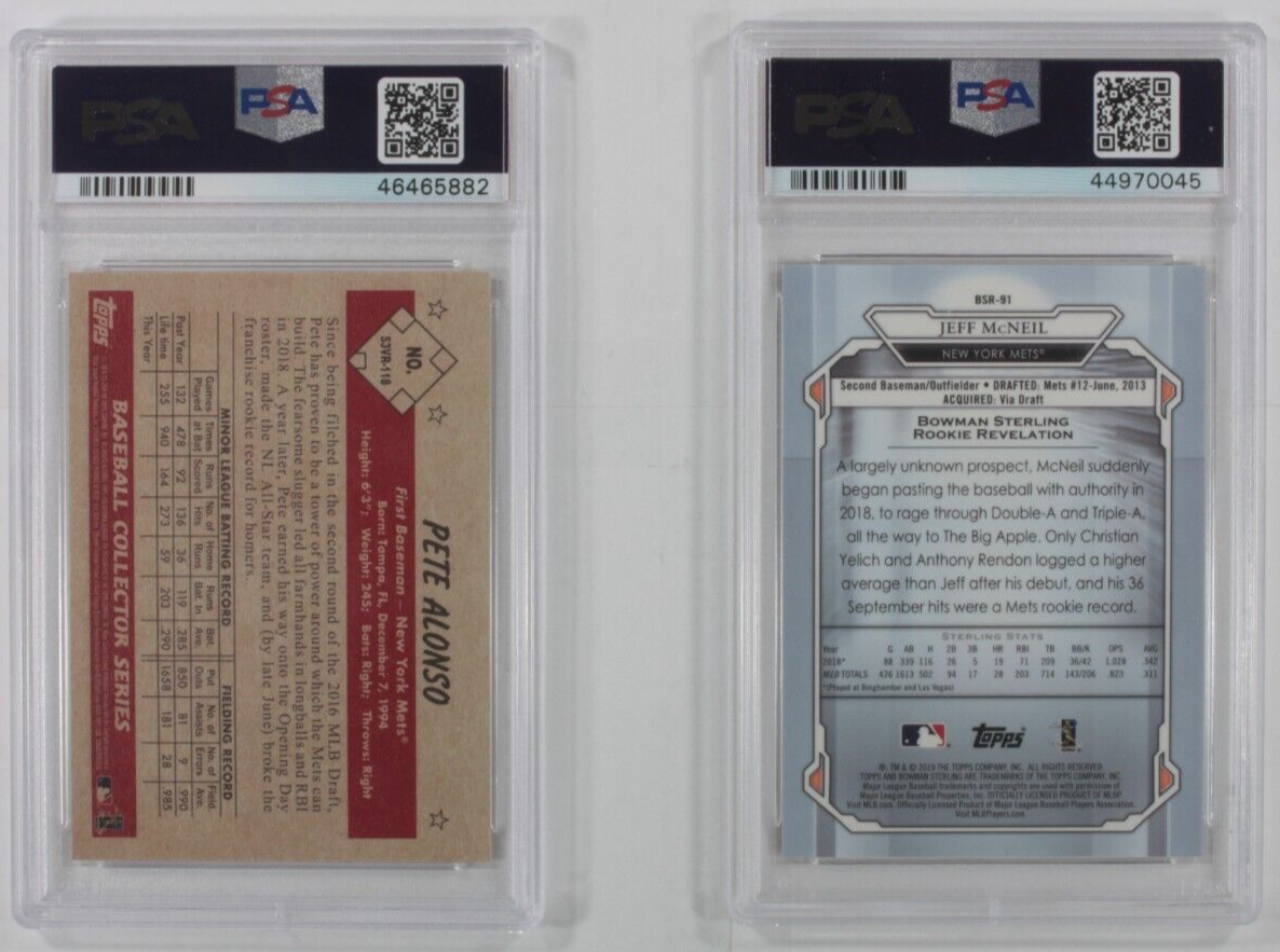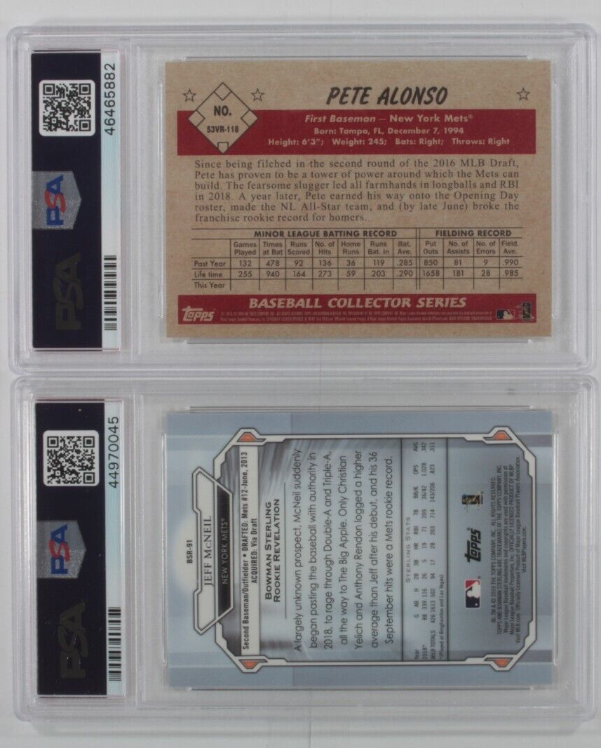 Lotto di 2 PSA 10 2019 Bowman Pete Alonso, Jeff McNeil Baseball Cards