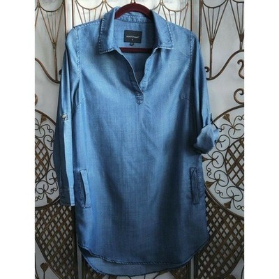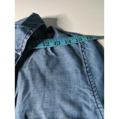 Velvet Heart Women's Tencel Shirt Roll Tap Sleeve V-Neck Collared Blue Size Small
