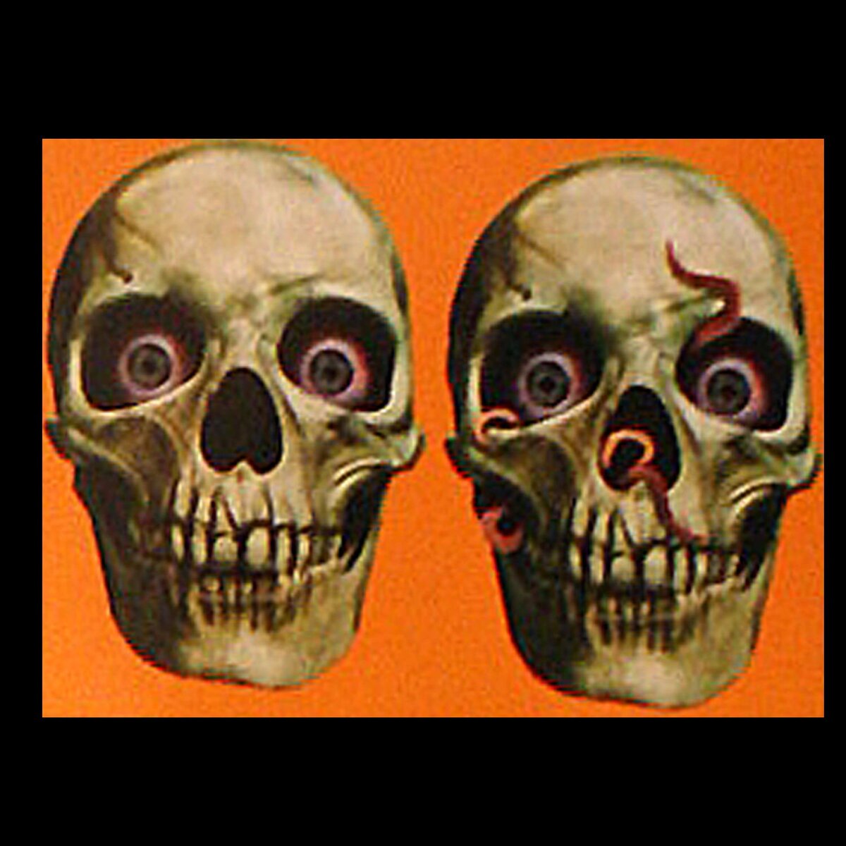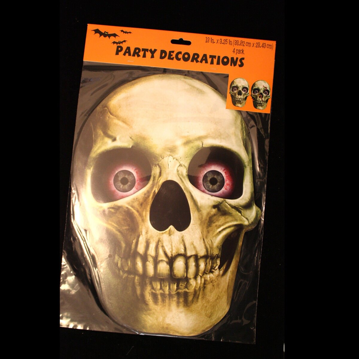 BIG SKELETONS SKULLS CUTOUTS2-each of 2-Different Designs, as pictured Gothic Party Door Wall Decoration Halloween Prop, Cheap Halloween Props, Cheap Halloween Decorations Each Approx 9-inch wide x 13-inch tall (22.5cm x 32.5cm) Cardboard Paper Gruesome Colorful Rotting HUMAN SKELETON SKULL with creepy bloodshot eyes and an unforgettable stare... Graveyard, Cemetery, Dungeon, torture chamber, Horror, Walking Dead Decor Theme