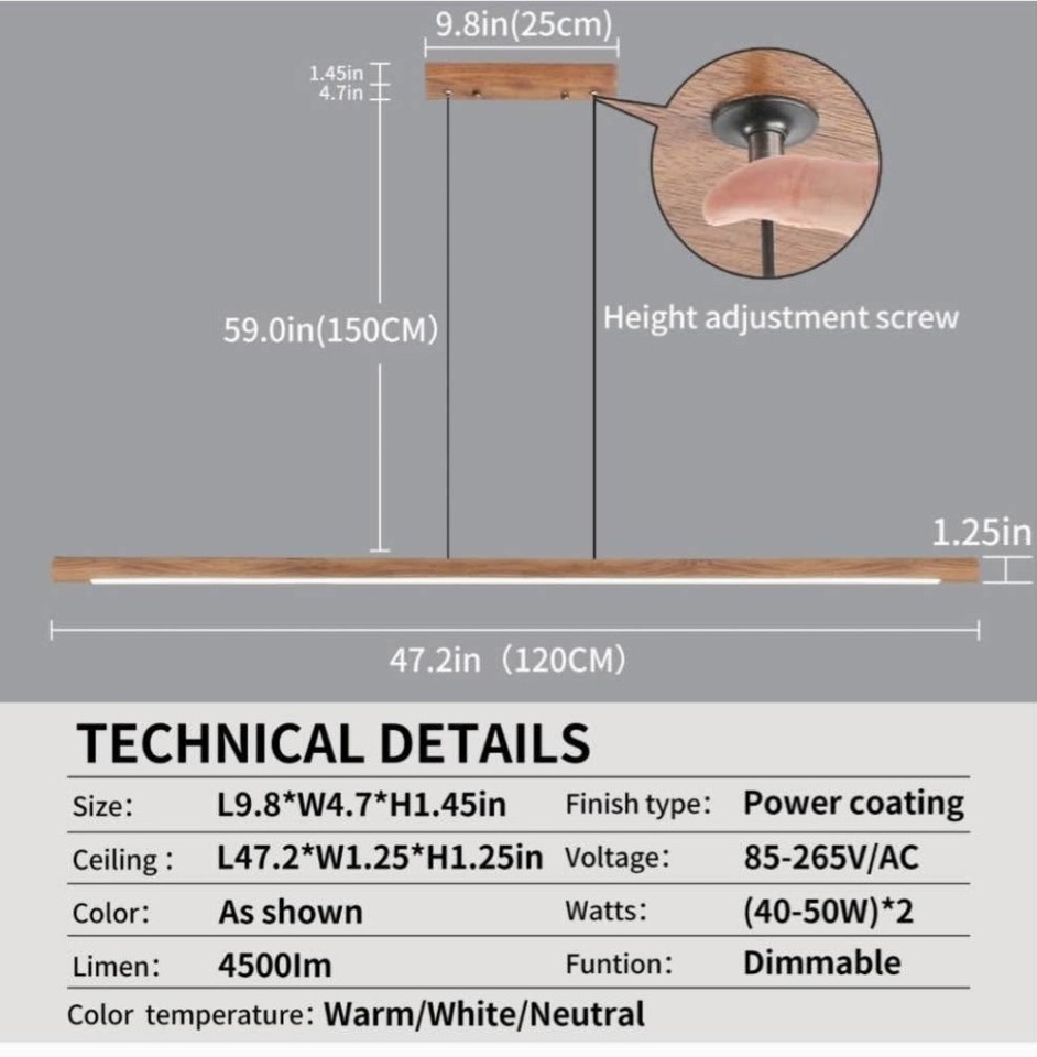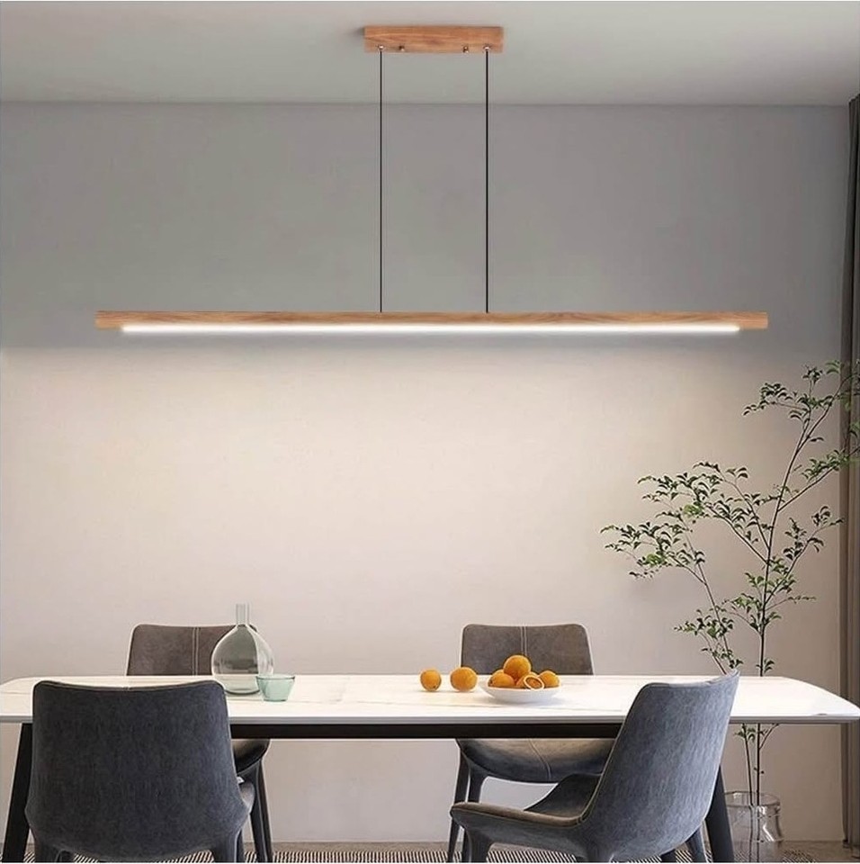 Modern Wooden Linear Pendant Light LED 47 In Dining Room Island Remote Dimmable
