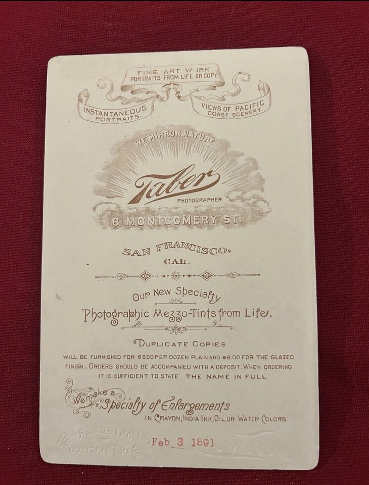 Antique Cabinet Card Photo Victorian Lady 2/3/1891 (PH73) San Francisco