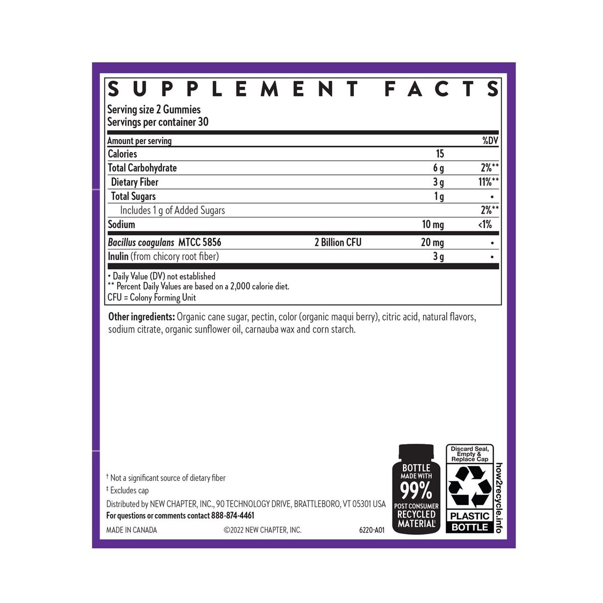 Expiration Date of 11/2026 ? DUAL-ACTION DIGESTIVE HEALTH: Multiply your benefits with friendly probiotics PLUS 3 g of prebiotic fiber to fuel your natural good bacteria ? 2 BILLION CFU: Optimized dose of excellent quality probiotics supports your digestive system and whole microbiome. No megabillions required?because MORE does not necessarily mean BETTER. ? INCLUDES PREBIOTICS: Our PREBIOTIC inulin fiber from chicory root nourishes your natural gut bacteria and replaces unnecessary extra sugar ? 55% LESS SUGAR plus : 100% delicious probiotic-prebiotic gummies have less sugar than the leading probiotic gummy plus ? Raspberry Flavored, Non-GMO Project Verified, Color from organic Chilean maqui berry, 100% Vegan, Gluten Free, No Synthetic Fillers, No Animal Gelatin, Free from 9 Major Food Allergens