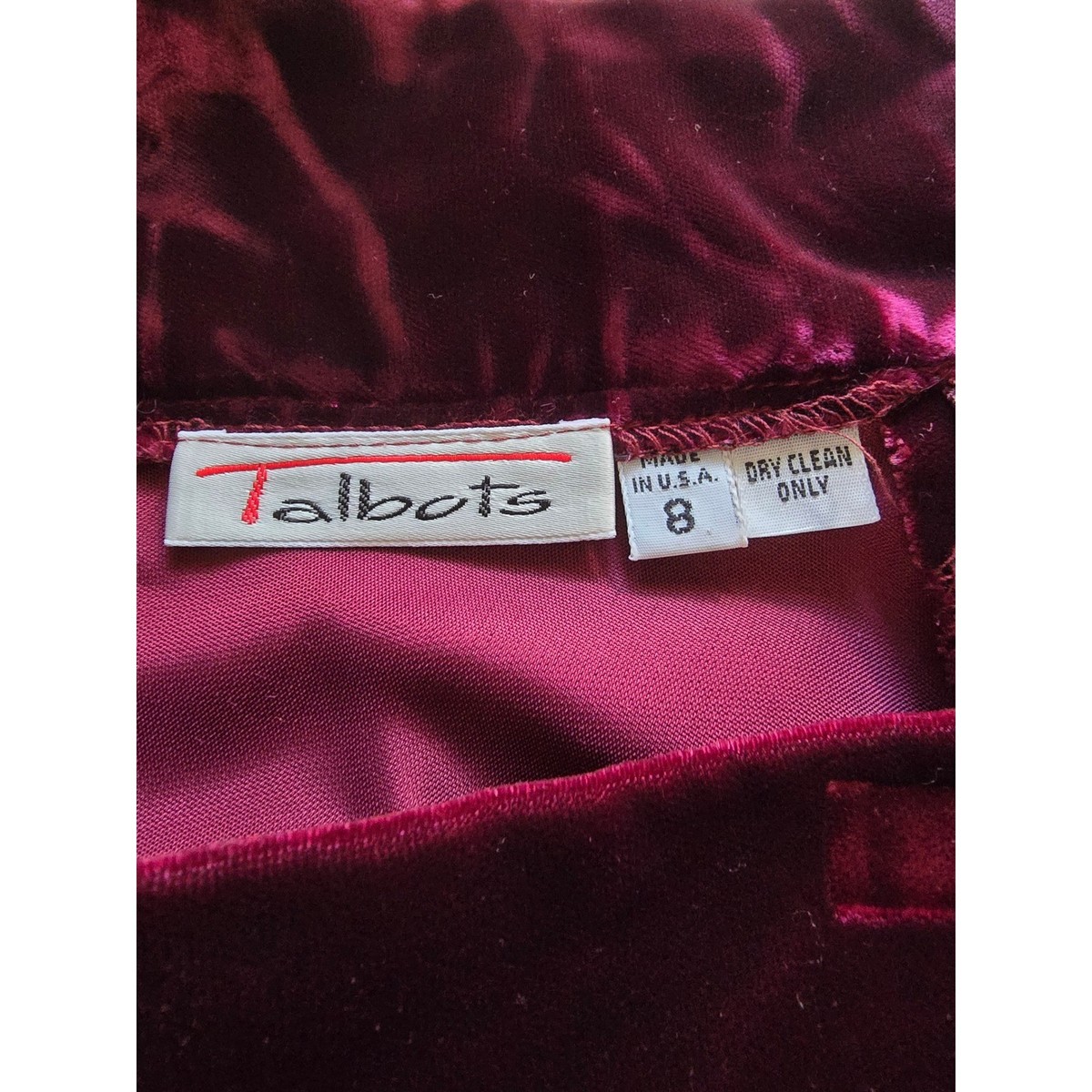 Vintage Talbots velvet maxi skirt in a rich burgundy wine hue offers a sophisticated silhouette for formal events or holiday gatherings. This elegant piece is crafted from a plush rayon blend velvet with a smooth lining, featuring a classic straight or slightly A-line cut that falls to a graceful floor length. The waist is detailed with a side button closure, ensuring a clean and polished look. Made in the USA, this timeless skirt pairs beautifully with silk blouses or cashmere sweaters for a refined evening ensemble.