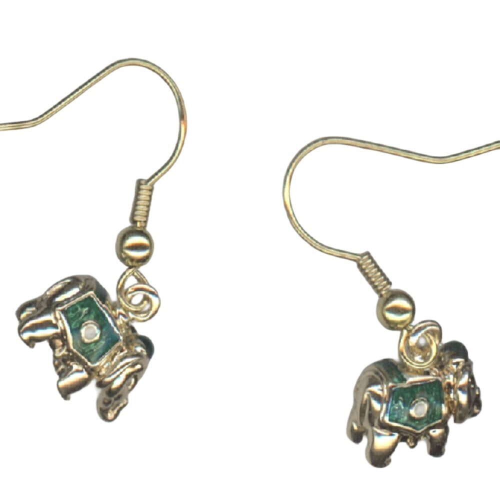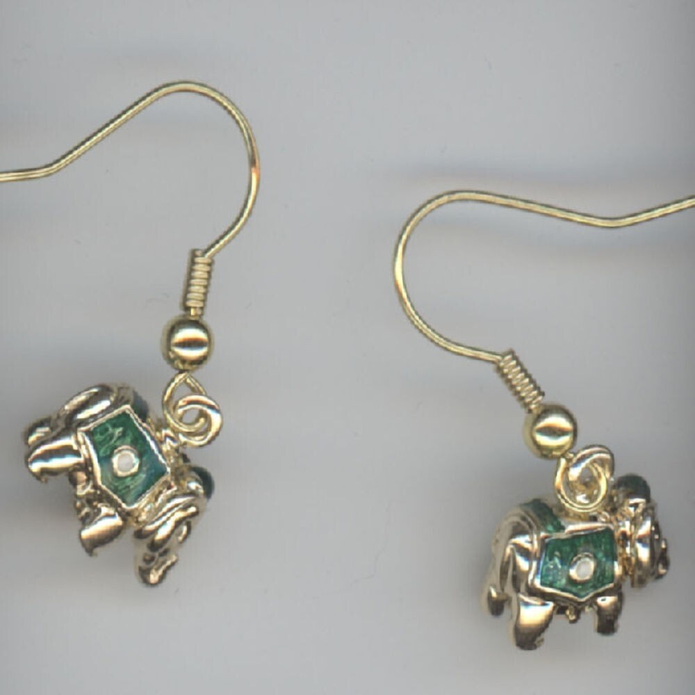 Russische Faberge Ei Stil Elefant Grün & Gold Farbe Figur Ohrringe