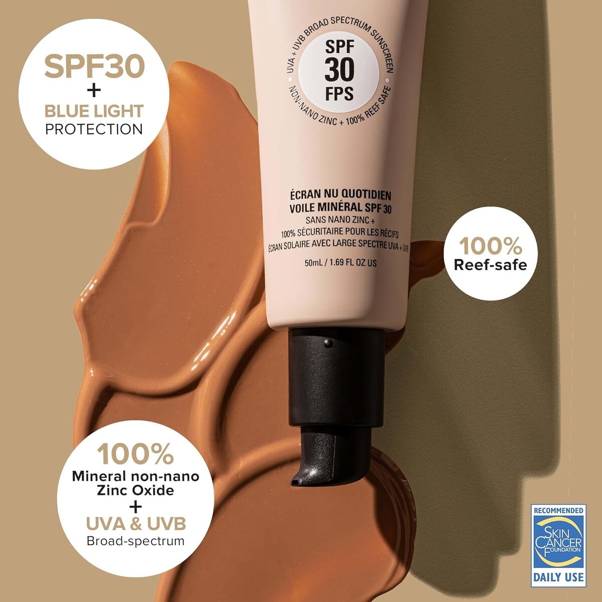 Nudestix Nudescreen daily mineral veil spf 30 - lightweight tinted mineral sunscreen with zinc oxide for UVA/UVB BLUE LIGHT PROTECTION