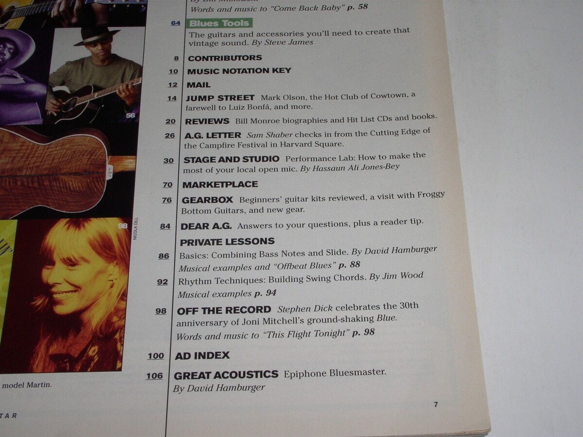 This is the May, 2001 issue of "Acoustic Guitar" magazine. Blues Special. Cover story on Keb' Mo'. Most of the magazine is on the blues, and blues artists. Inside: Jerry Ricks, Eric Bibb, Joni Mitchell music for the song, "This Flight Tonight".