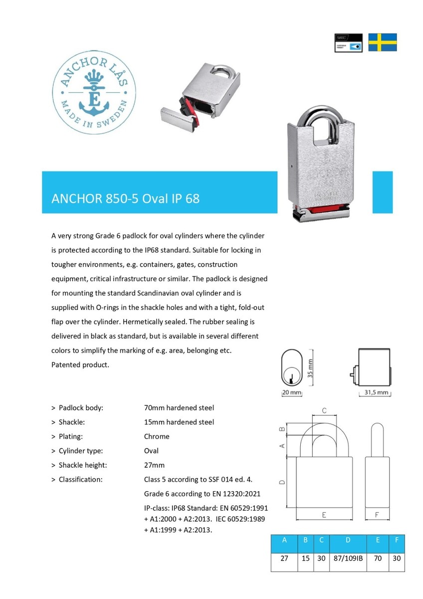 ANCHOR LÅS 850-5 S27 IP68 High Decurity Padlock . COMING SOON / April 22