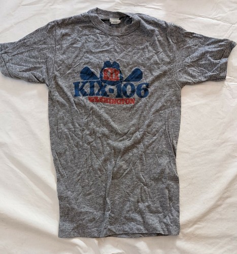 A la venta hay una camiseta de manga corta Kix 106 FM Washington Dc Country Radio vintage usada de los años 80 Med USA Hecha de una mezcla de algodon y poliester.