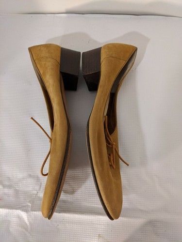 A la venta hay un par vintage usado de Salvatore Ferragamo Oxfords Boutique Brown Lace Up Heels Shoes hechos de ante de cuero en talla 8 AA