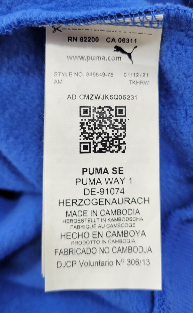 D) Puma Blue Men Pullover Long Sleeve Big Logo Hoodie Kangaroo Pocket Large