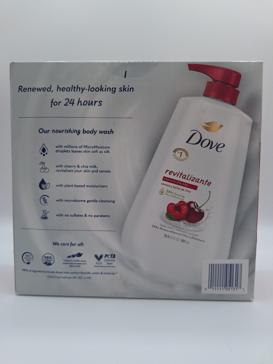 Dove Refreshing Body Wash Cherry Chia Milk Set Of TWO JUMBO 30.6 Oz New In Box.
