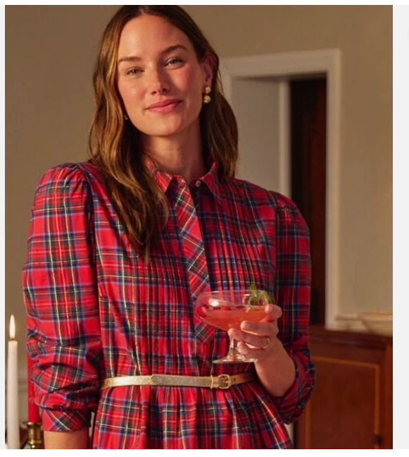 New women's size M VineyardVines Christmas tartan plaid poplin popover dress