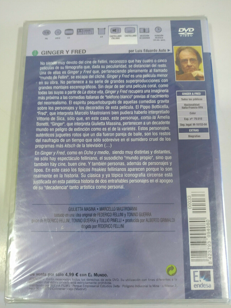 Ginger & Fred Federico Fellini Mastroiani DVD Region 2 Spanish Italian New 2T