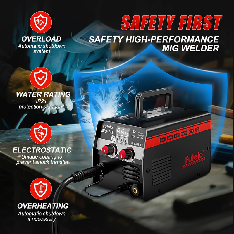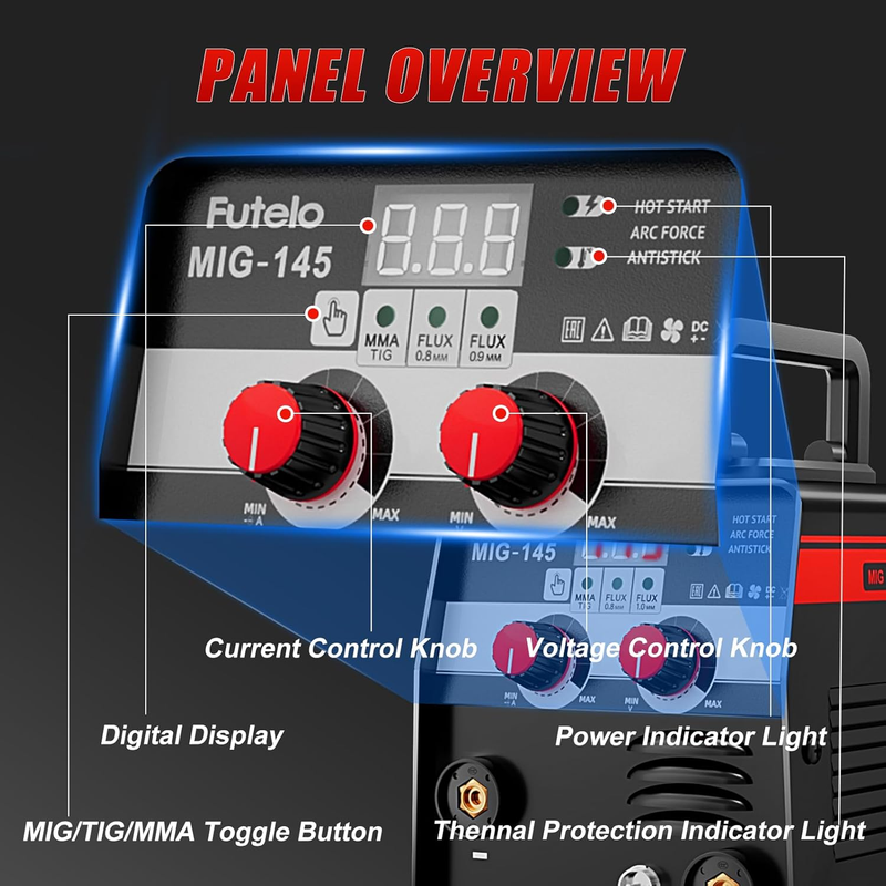 ?CLEAR LED DISPLAY?The bright digital screen shows real-time welding amperage and wire diameter, so you can monitor and adjust settings on your mig welder 110V without removing your mask. Intuitive and easy to use, it ensures consistent, high-quality welds?perfect for both experienced welders and weekend DIYers