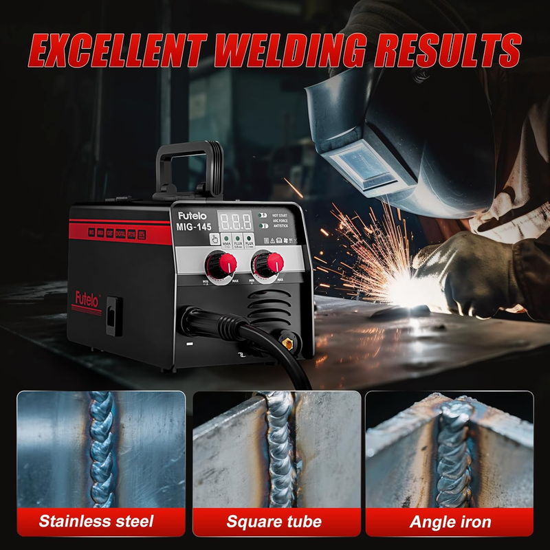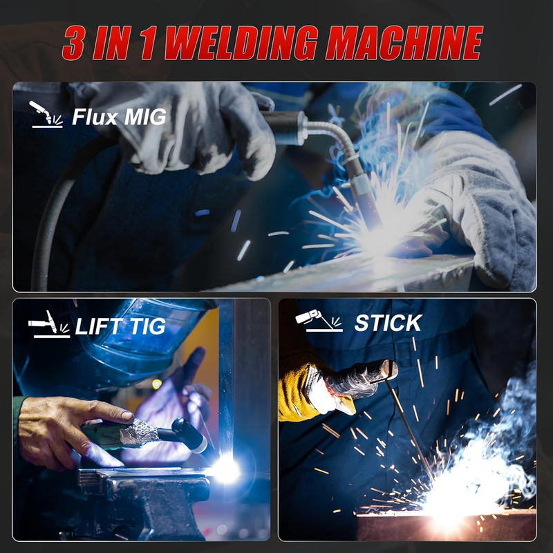 ?3-IN-1 WELDER?Compact 3 in 1 welder combines MIG welder, Stick, and Lift TIG welding machine functions to tackle a wide range of welding tasks. With 30?145A output and support for carbon and stainless steel (1?5mm), it?s ideal for home DIY, repairs, and outdoor metal work. (NOTE: TIG torch not included?please purchase separately)