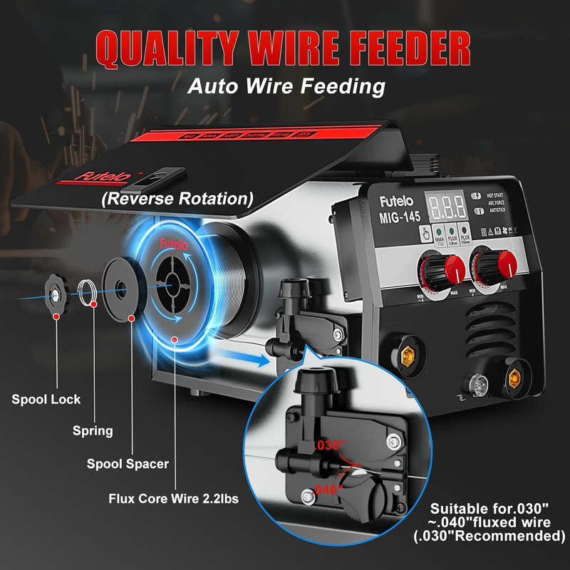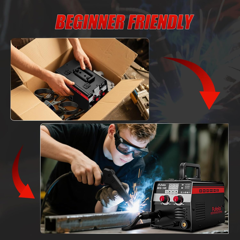 ?SMART SYNERGIC CONTROL?Perfect for beginners! Just set your wire diameter (.030"/.035") or amperage (30-145A)?the welder machine auto-adjusts voltage and wire speed. It even suggests metal thickness! Start welding like a pro, even if it?s your first time