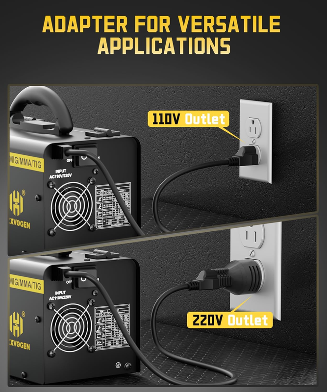 DUAL INPUT VOLTAGE: This MIG welder 110v/220v can quickly switch between 120V and 240V depending on the power configuration of the workplace, so whether it's for home repairs, workshop projects or outdoor construction, one welder meets all needs