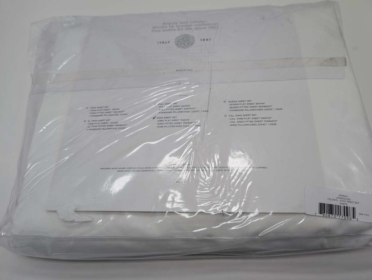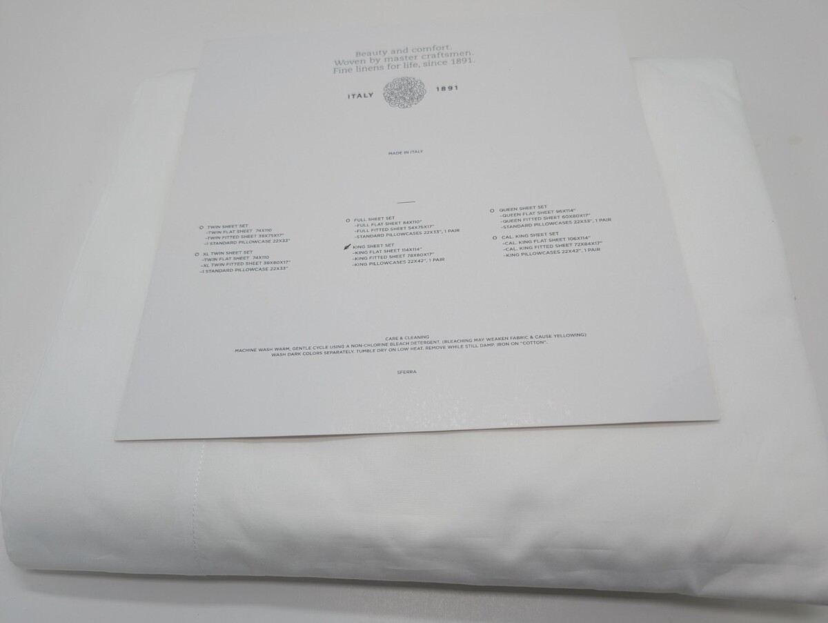 Sferra Celeste White King Sheet Set 4 Piece Solid Cotton Percale 406TC Italy NEW