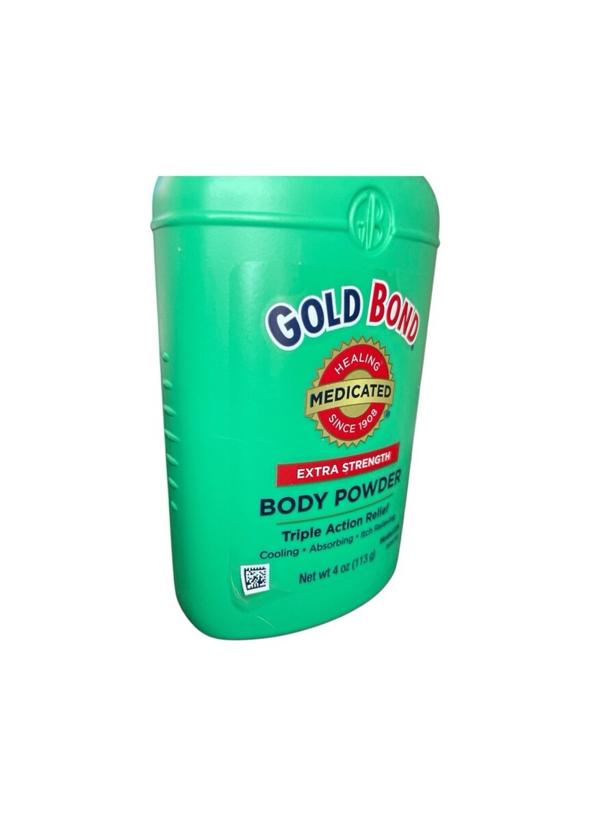 Gold Bond Extra Strength w/ TALC Triple Action Relief Medicated Body Powder 4 Oz. Label has some peeling. Please see photos.