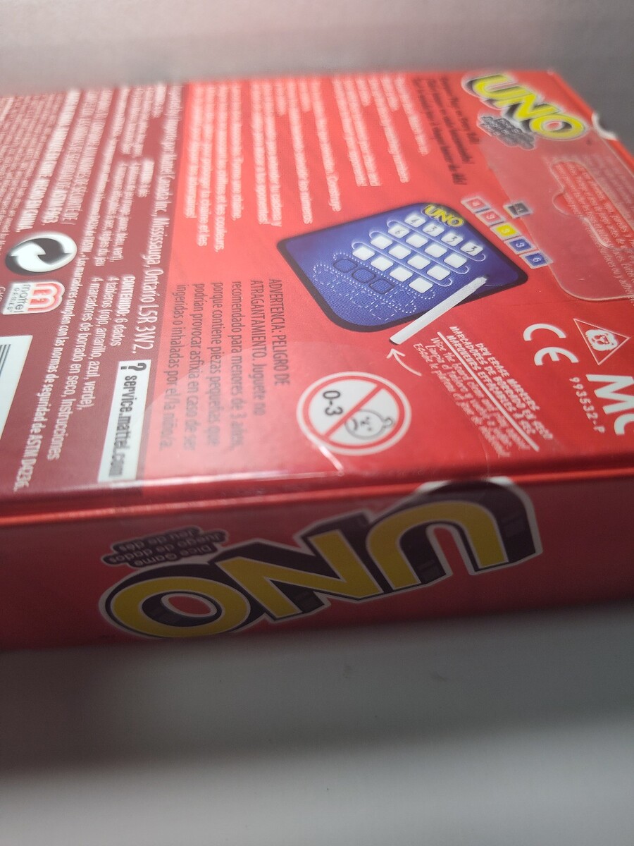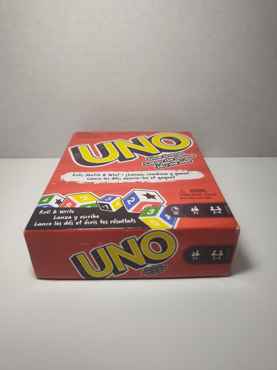 New sealed UNO Dice Game Roll Write Roll Match Win Family Party Game by Mattel. Fun and fast-paced twist on the classic UNO game using dice and score sheets.