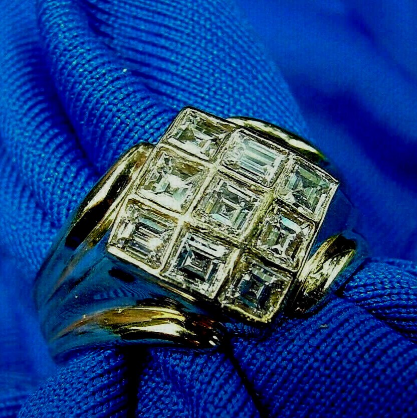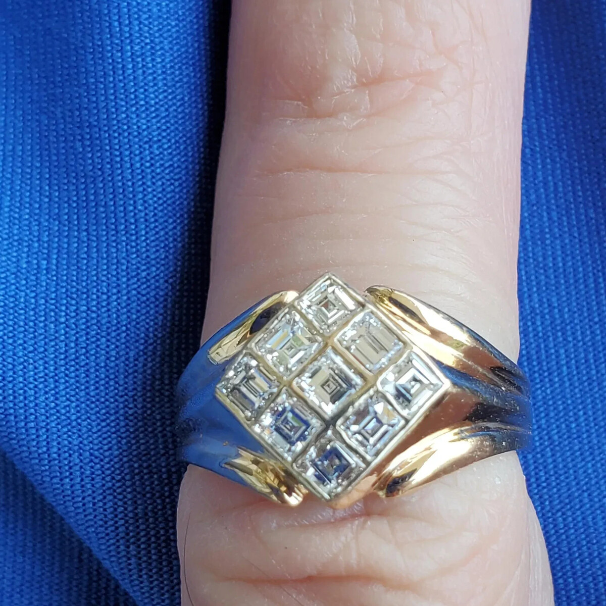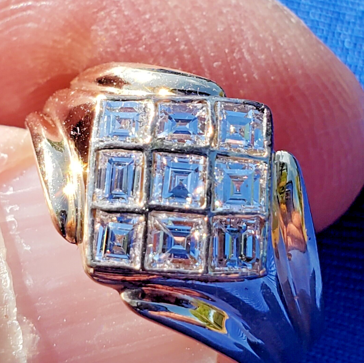 Art deco carre diamonds set in platinum and gold original statement ring.