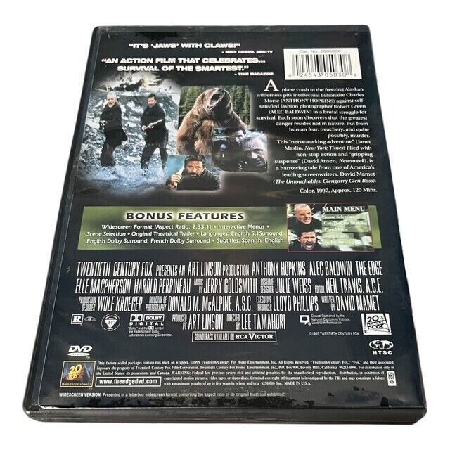The Edge DVD 1997 Anthony Hopkins Alec Baldwin Survival Thriller Movie