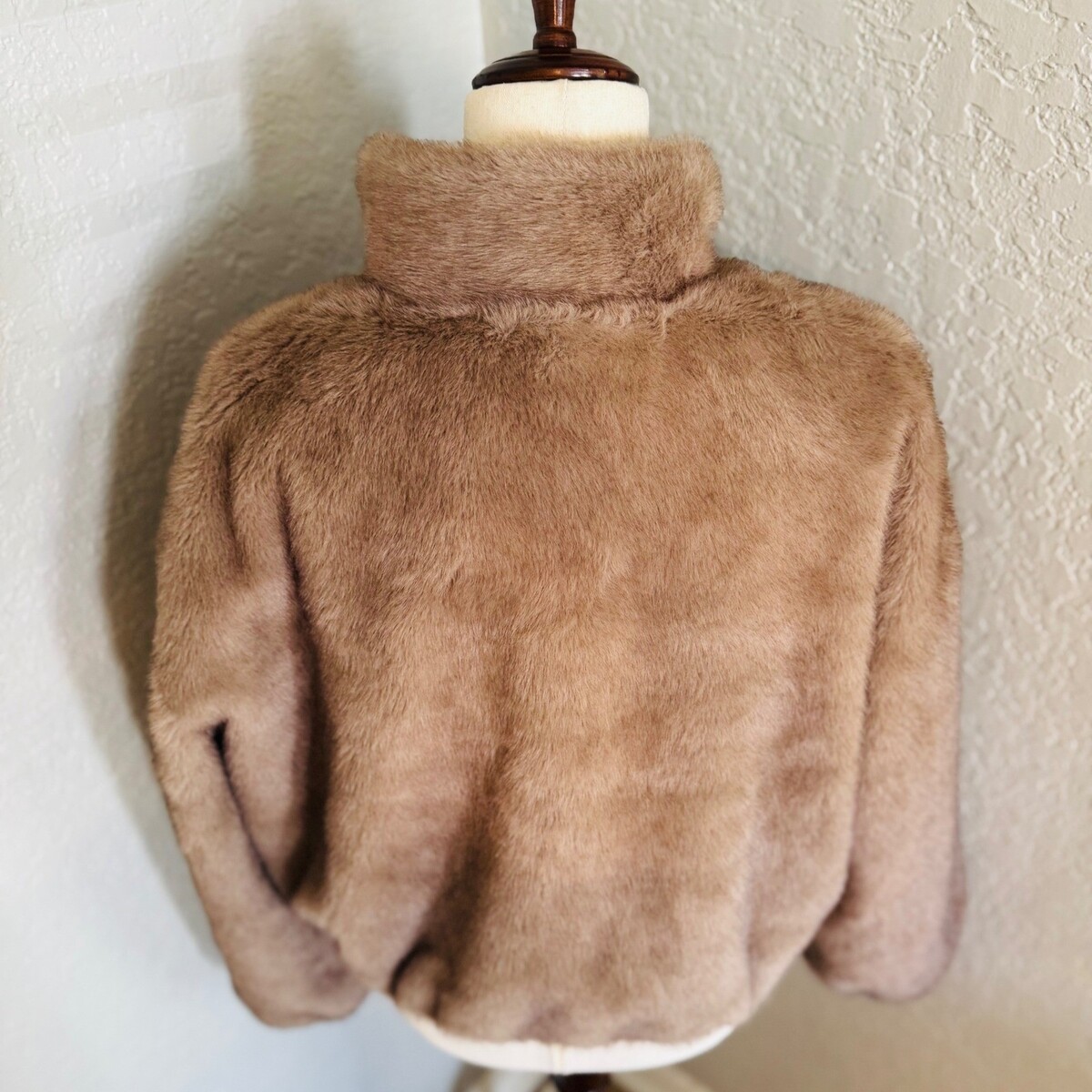 Rebecca Minkoff Faux Fur Crop Jacket, Taupe/Tan Large, NWT