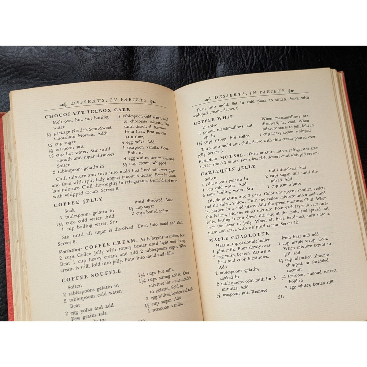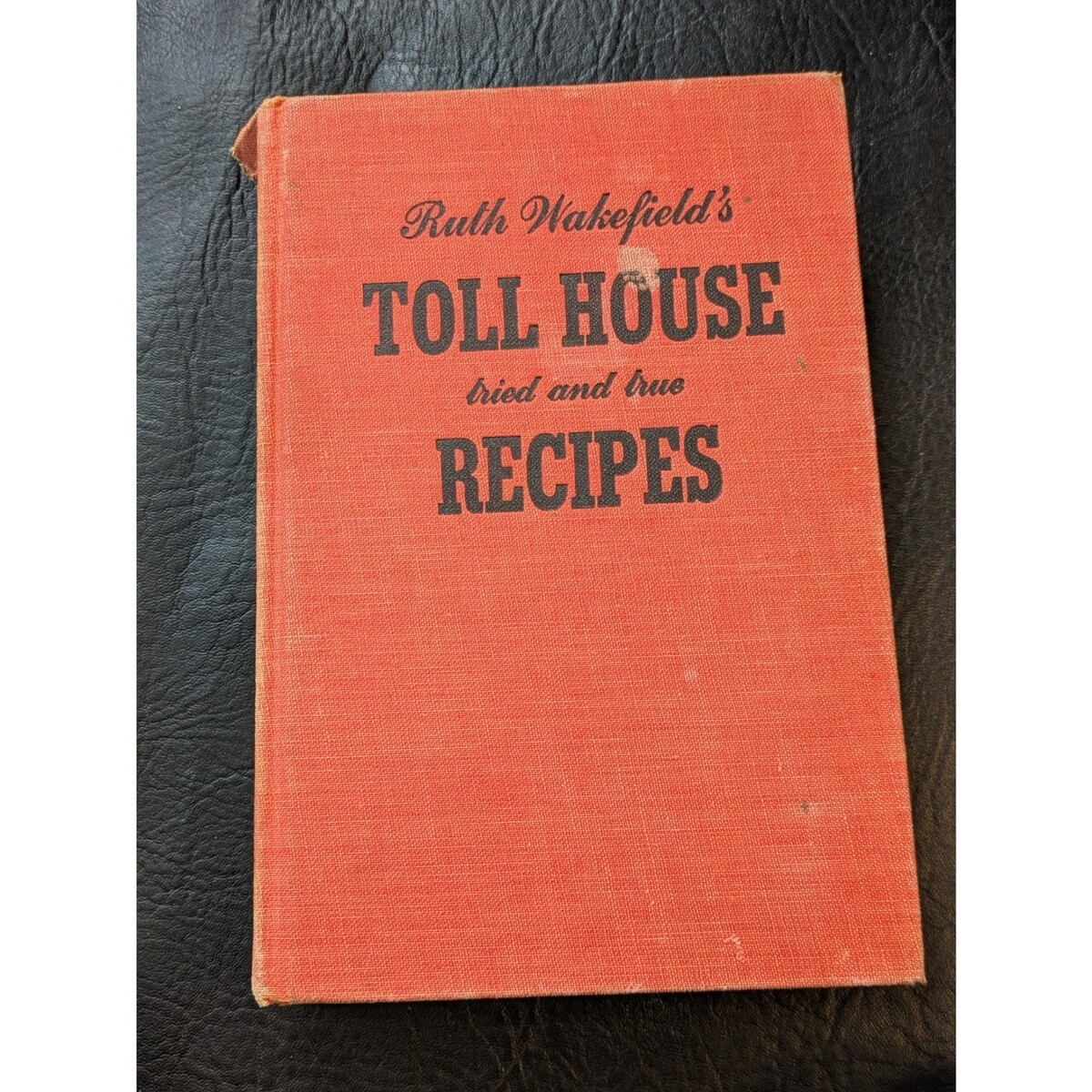 Edition vintage 1949 de Toll House Tried and True Recipes de Ruth Wakefield, publiee par M. Barrows Company, Inc. Ce livre de cuisine classique presente une collection complete de recettes americaines du milieu du siecle, y compris le celebre biscuit aux pepites de chocolat original. La reliure cartonnee en toile orange montre son age avec une charmante patine, contenant des sections sur les viandes, la volaille, les desserts et bien plus encore. Un merveilleux ajout pour les collectionneurs d?histoire culinaire ou ceux qui recherchent une inspiration de cuisine vintage authentique.