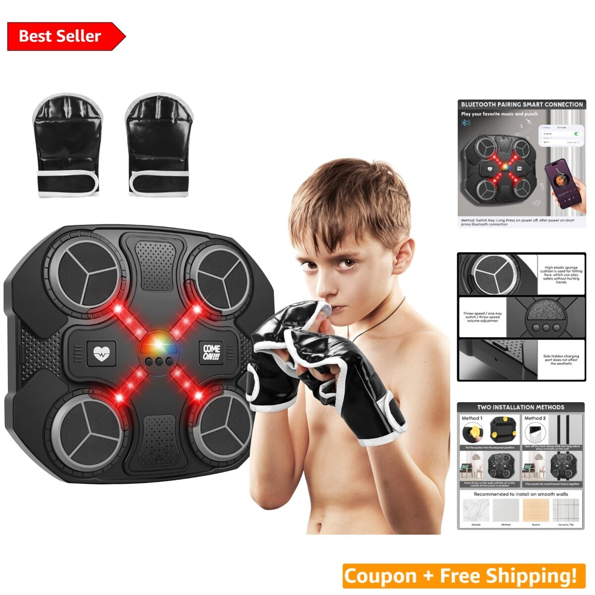 Kids Music Boxing Target - Wall Mounted Safety Training Pad with Gloves 3-12