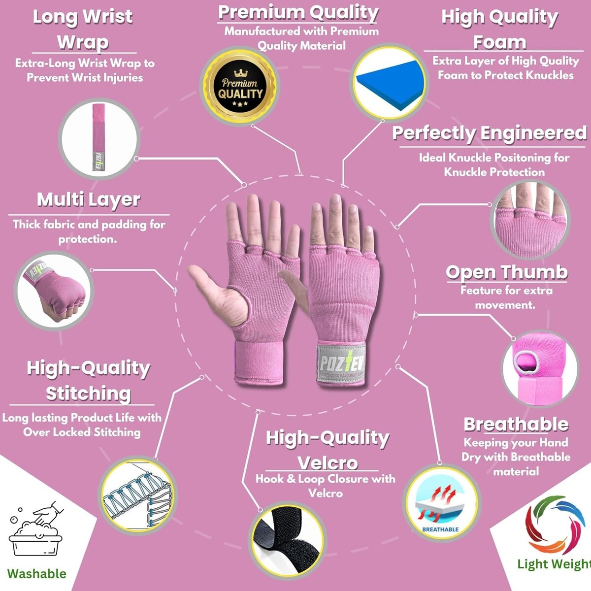 Make the investment in safety and durability that goes beyond ordinary hand wraps. Elevate your training experience, and show off your style with our eye-catching pink design. Order your pair of Breathable Pink Boxing Quick Wraps today for a step-up in your combat sports journey!