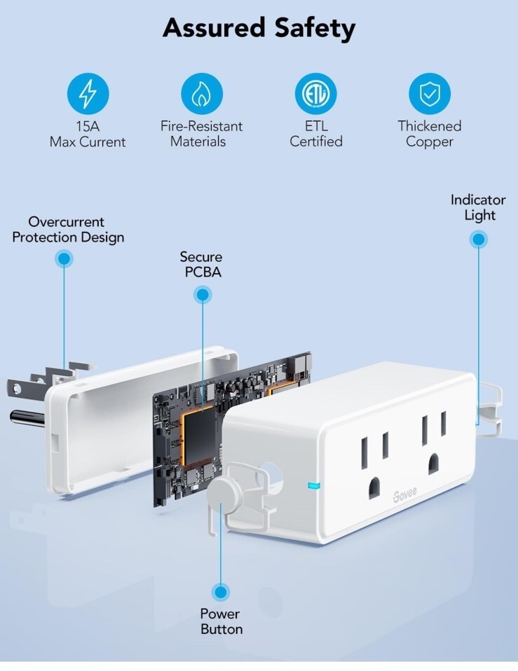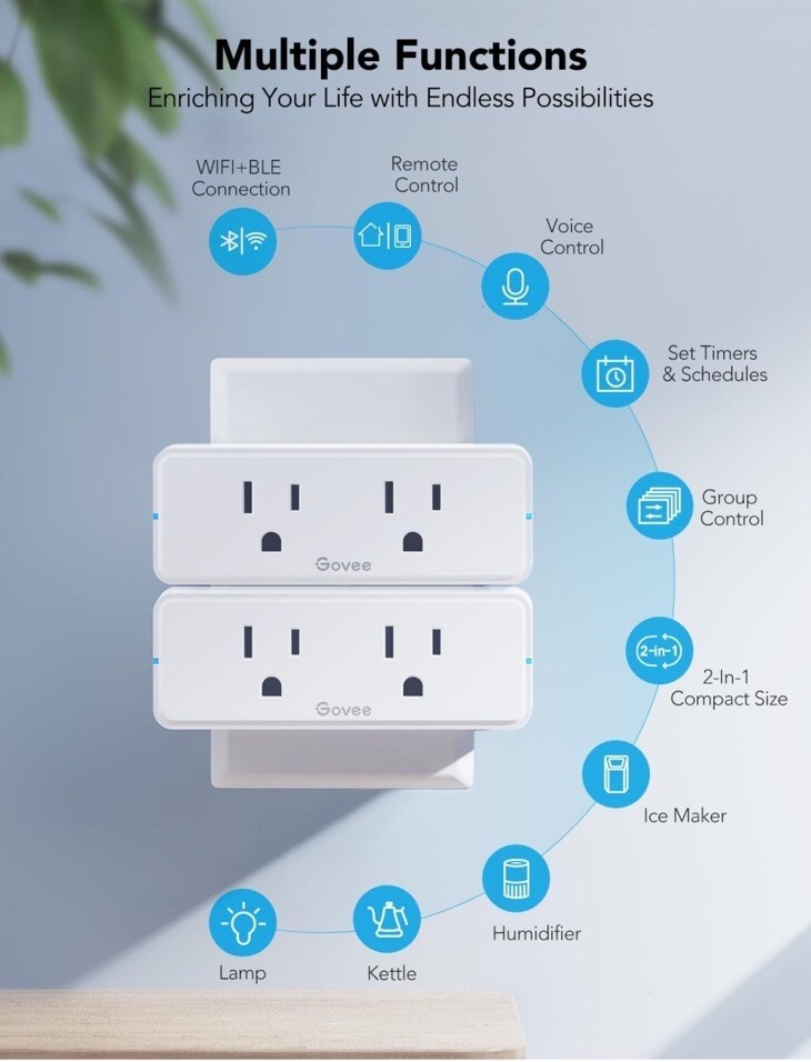 Govee Smart Plug 4-Pack White Plastic United States A Plug Type 1 Outlet