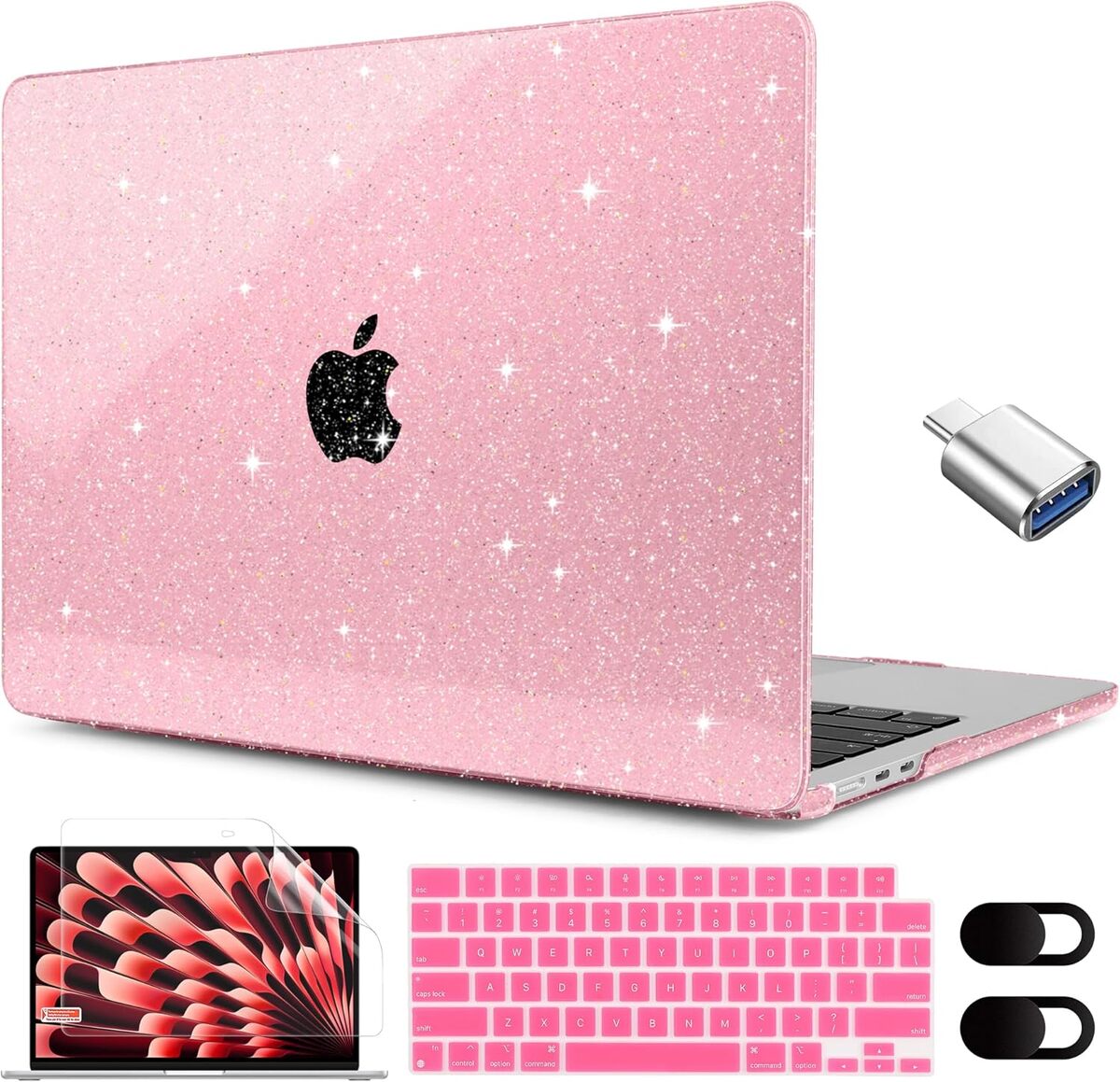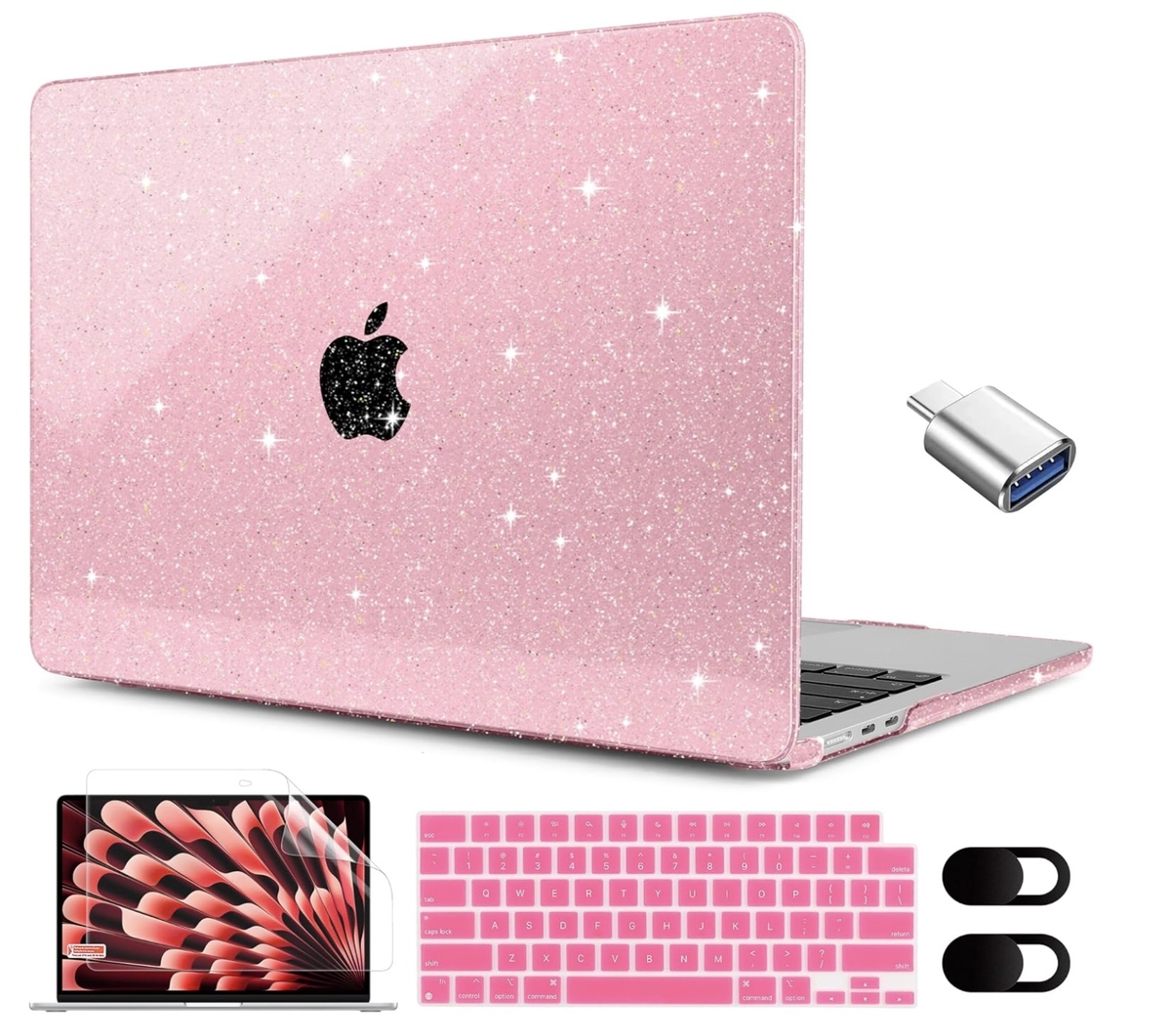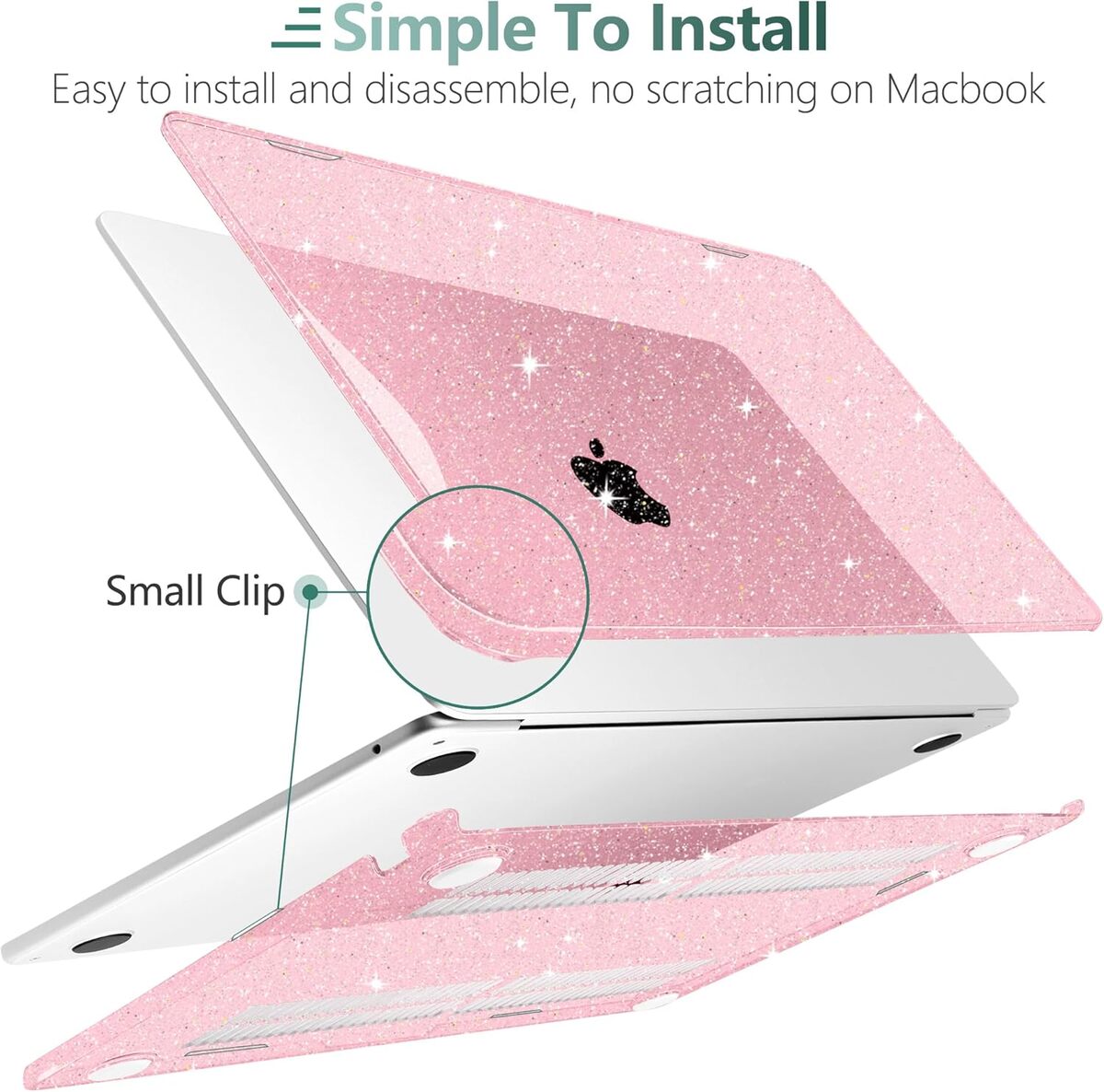 Glitter Pink MacBook Case with Pink Matching Accessories Bundle