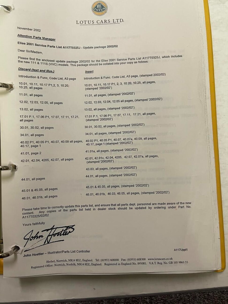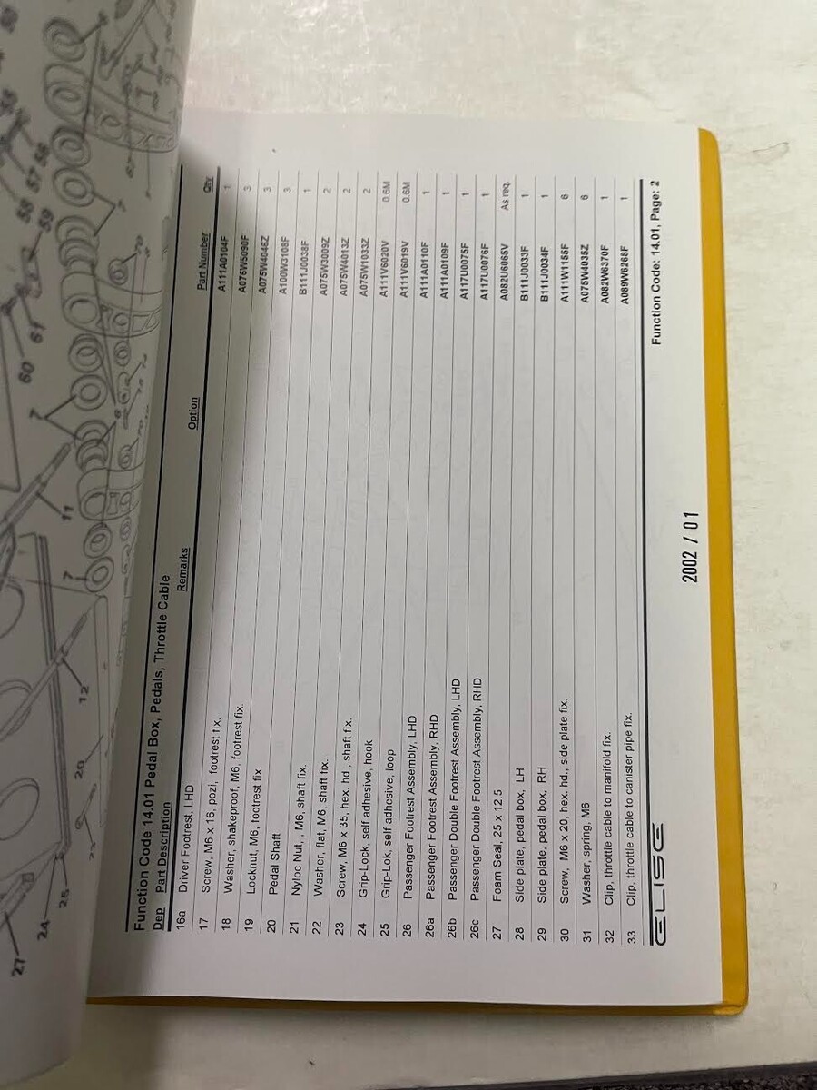 2001 2002 2003 ONWARD LOTUS ELISE Service Parts List Manual Book OEM