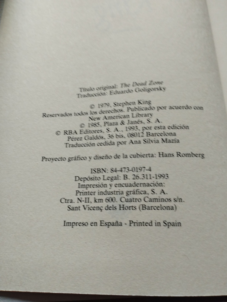 La Zona Morte Stephen King Rba 1993 - Livre and 50 similar items