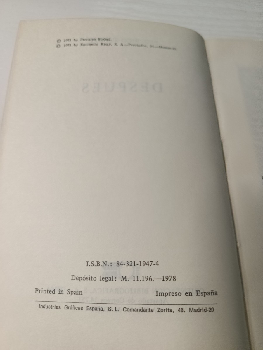 Apres, Federico Suarez, Obisa 1978, livre espagnol, essai historique, recit espagnol, litterature des annees 70, livre ancien, collection vintage, maison d'edition Obisa