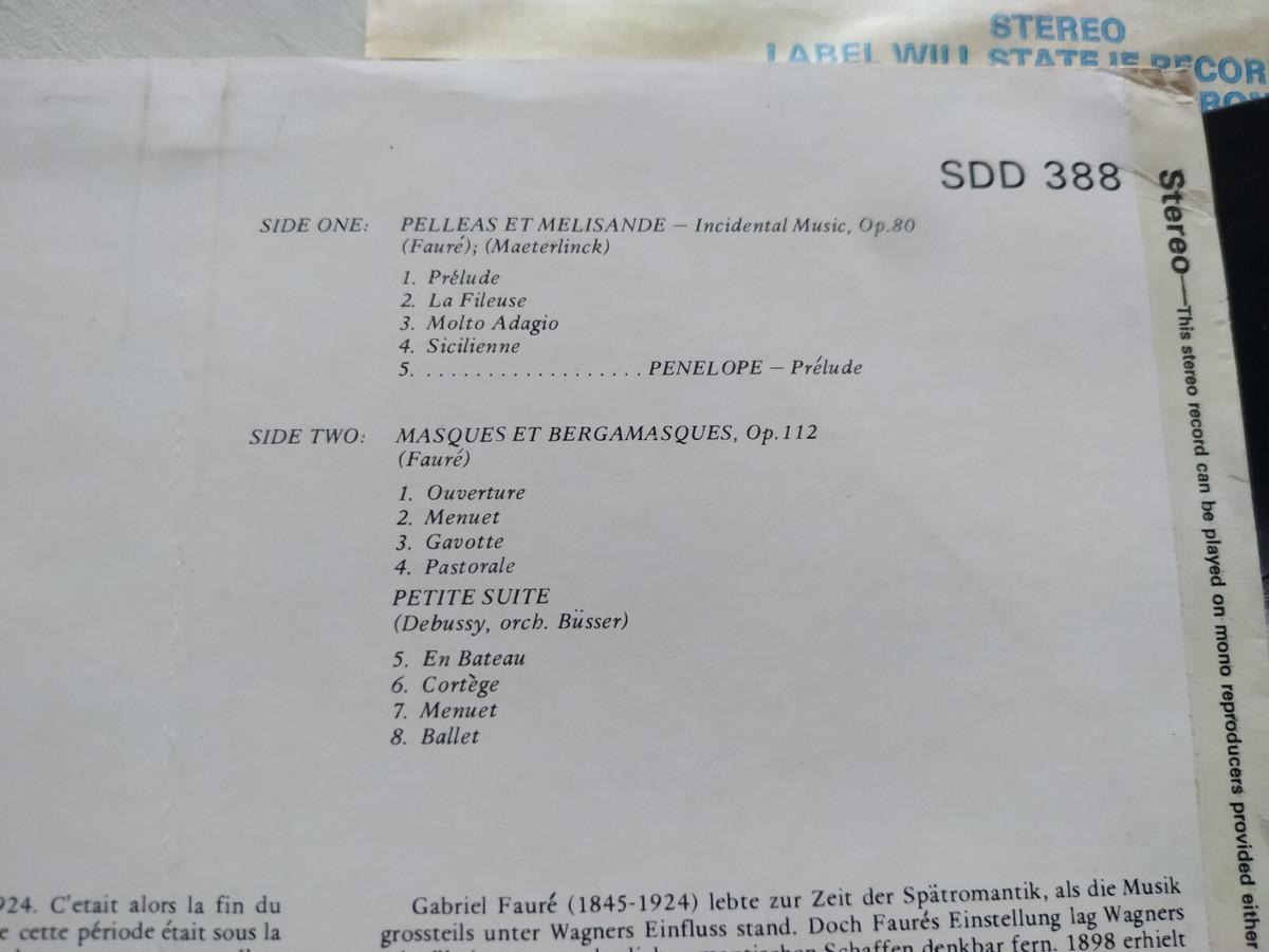 Faure Debussy Ernest Ansermet 1961 UK Press and similar items