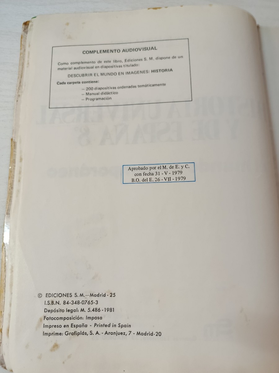 Historia Universel et de 8eme EGB SM 1981 - de d'espagnol